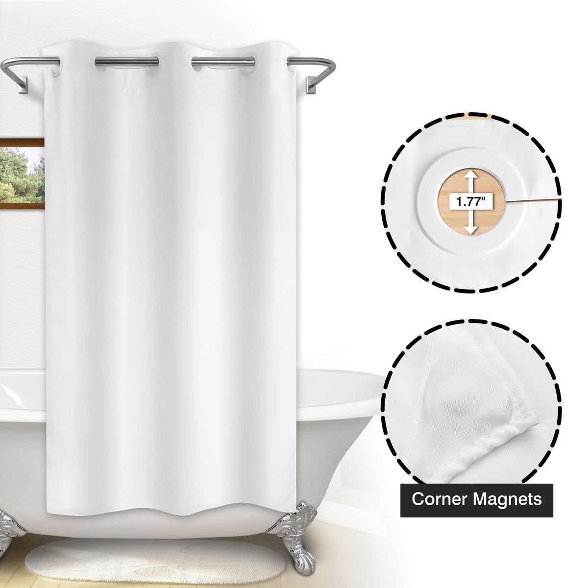 - Q: Does the shower curtain have any special features? A: Yes, it features a magnetic hem with two corner bottom magnets to help keep the curtain in place and ensure it hangs naturally.