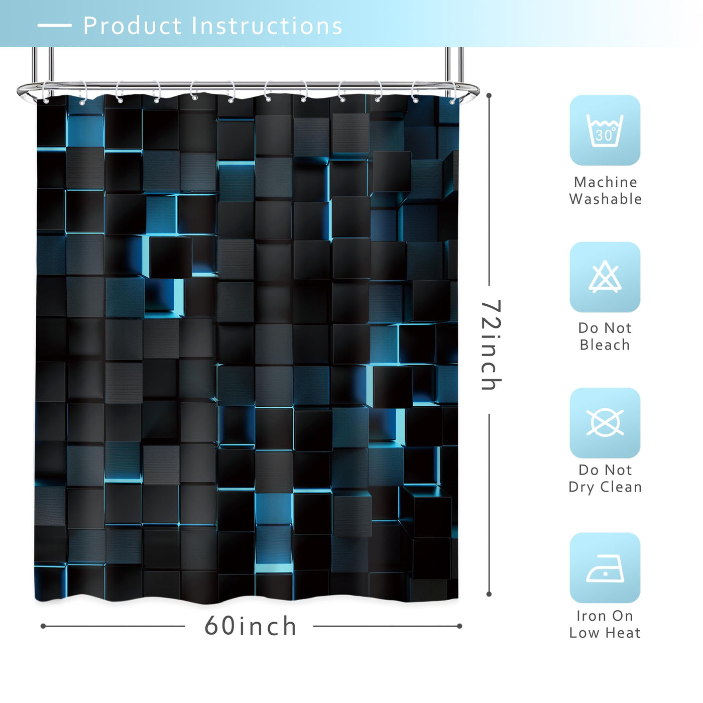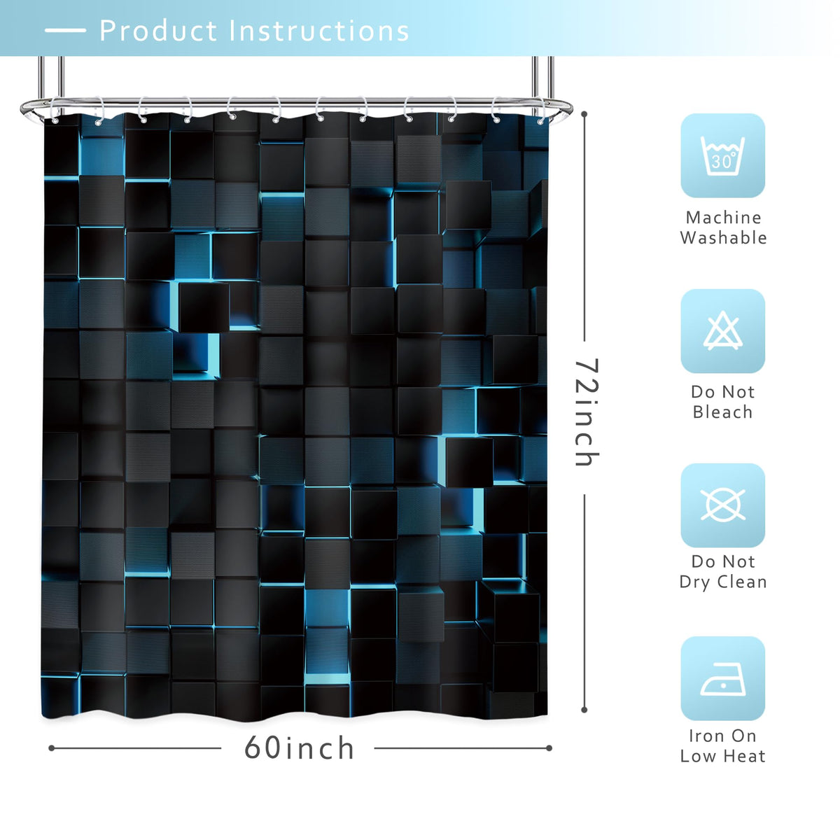 Riyidecor Black Navy Blue Wall Shower Curtain 60Wx72H Inch Abstract Brick Modern 3D Gradient Design Futuristic Cubes Geometric P