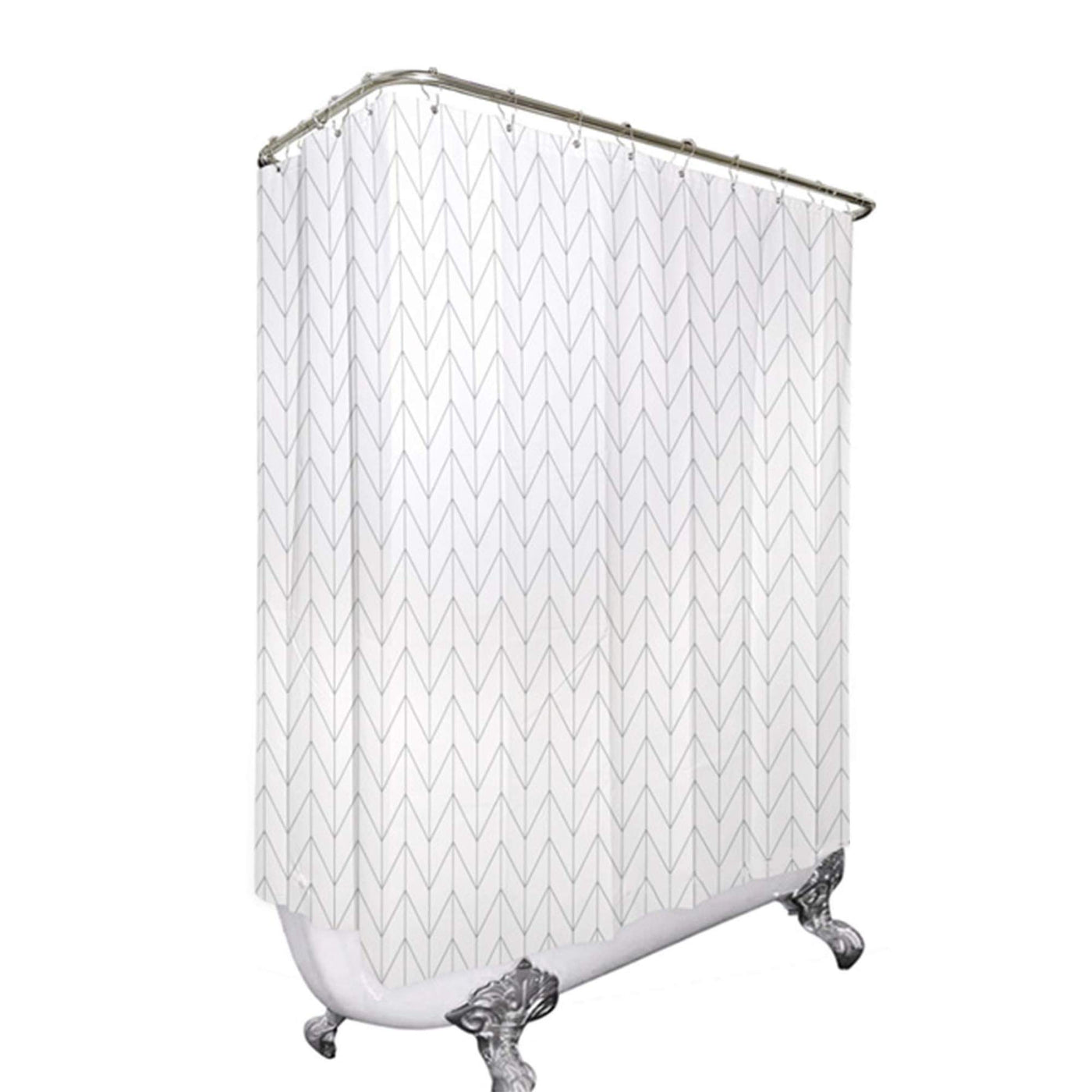 Riyidecor Clawfoot Tub Chevron Shower Curtain 180x70 Inch All Around Bathtub Wrap Around White Herringbone Round Freestanding Surround Oval Polyester Fabric Extra Wide Panel Waterproof 32 Metal Hooks