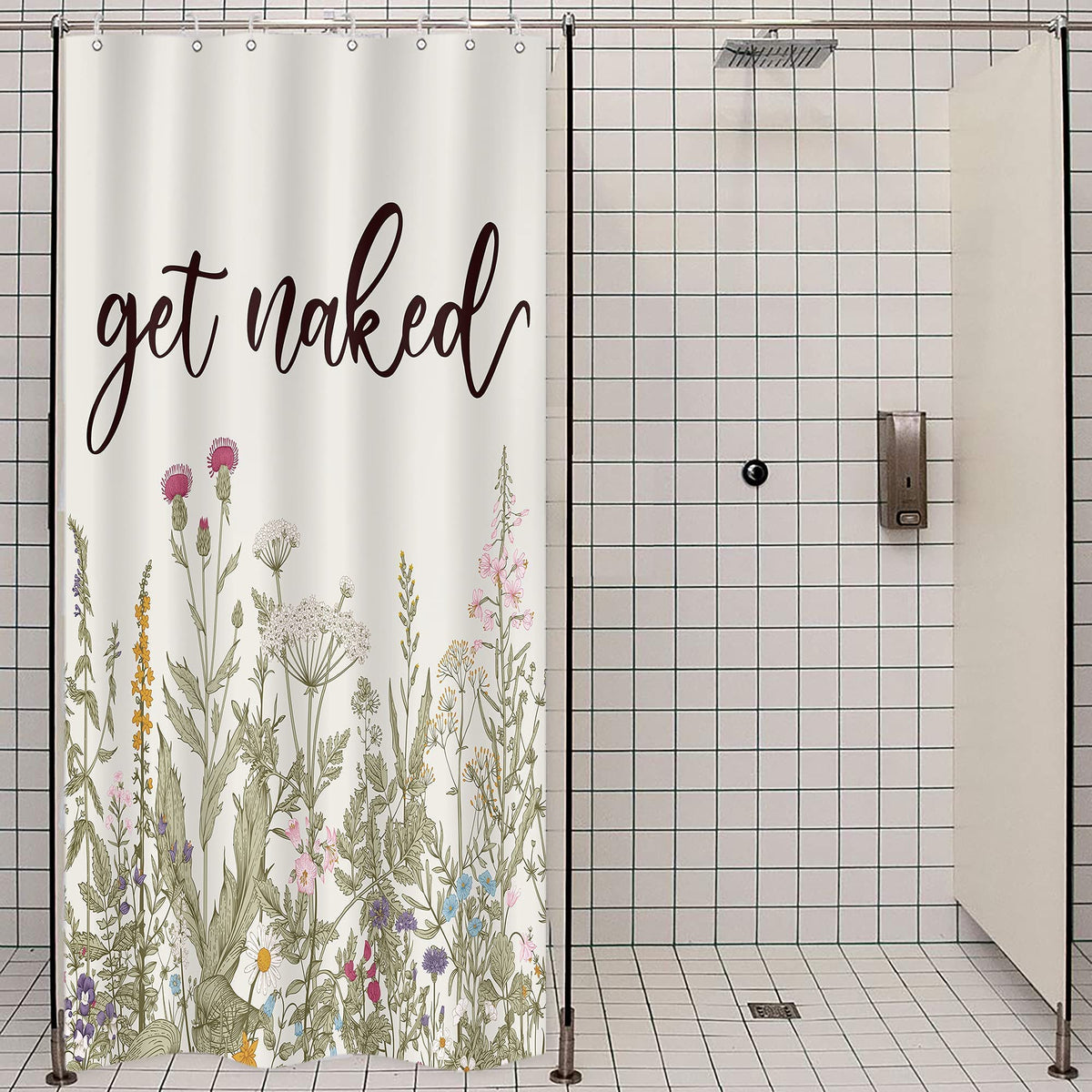 Riyidecor Stall Get Naked Wildflower Small Half Shower Curtain 36Wx72H Inch Farmhouse Flower Botanical Floral Herbs Decor Bathroom Windows Balconies Fabric Polyester Waterproof 7 Pack Plastic Hooks
