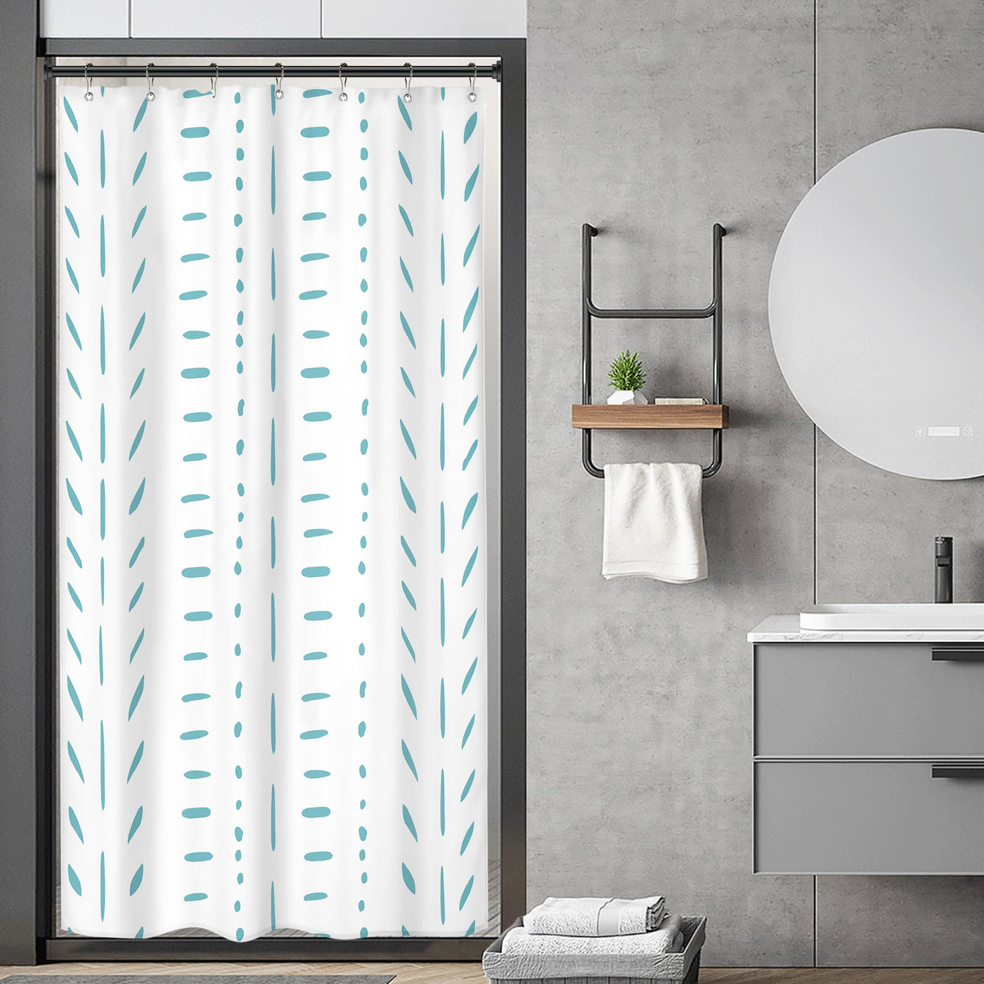Riyidecor Stall Small Boho Teal Half Size Shower Curtain Striped Geometric Chevron Herringbone 36Wx72H Inch Single Narrow Tiny W