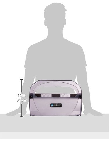• Q: What are the dimensions of the San Jamar TS510TBK Toilet Seat Cover Dispenser? A: The dispenser measures approximately 12 inches in height, 10 inches in width, and 4 inches in depth, making it compact enough for most restroom spaces.