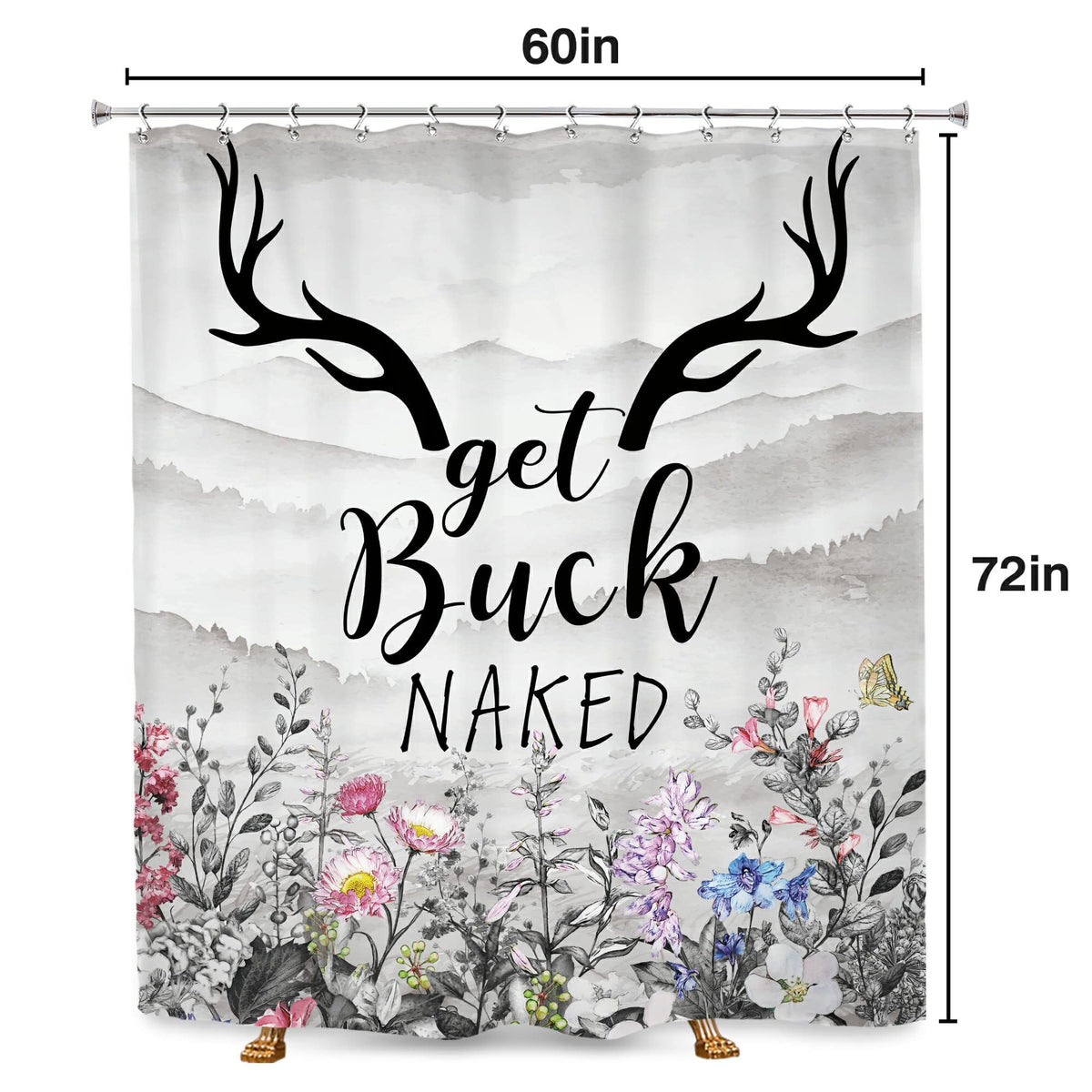 Svbright Get Buck Naked Shower Curtain 60Wx72L Inch Funny Farmhouse Country Rustic Floral Western Grey Mountain Cute Quotes Plan