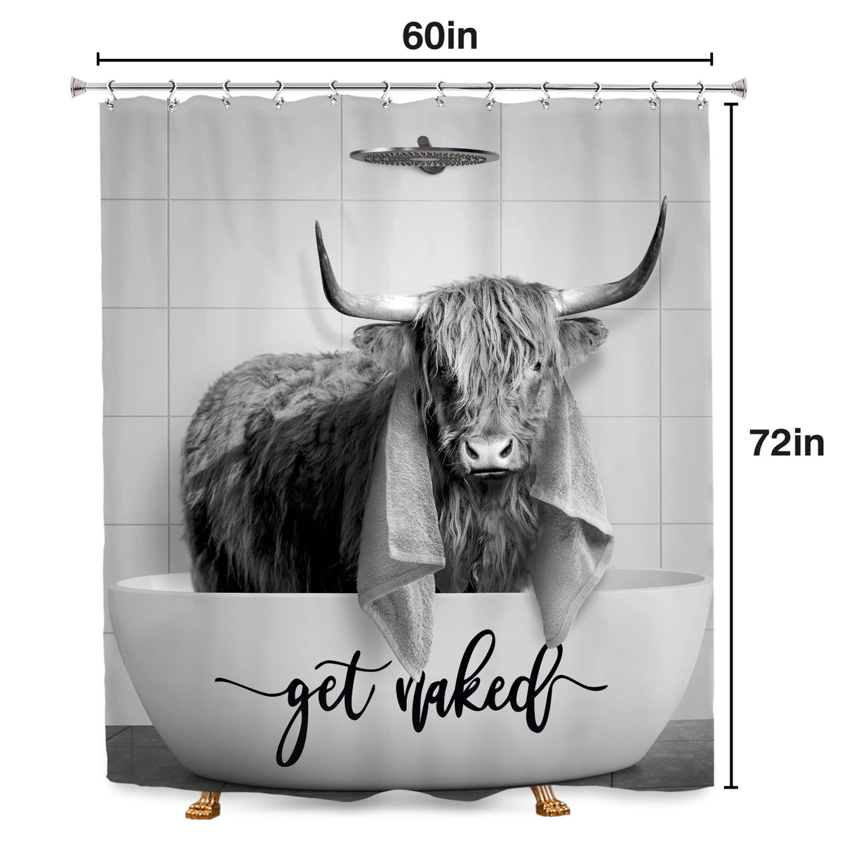 - Q: What is the size of the SVBright Highland Cow Shower Curtain? A: The SVBright Highland Cow Shower Curtain measures 60 inches in width and 72 inches in length, making it suitable for most standard bathrooms.