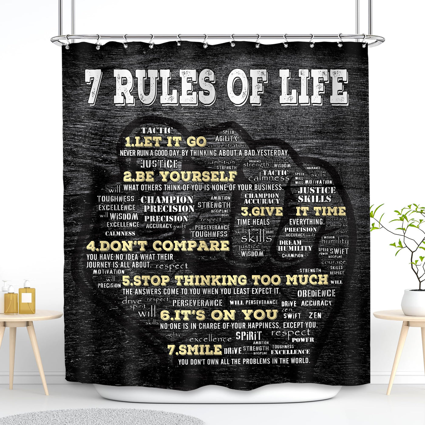 Svbright Mens Motivational Quotes Shower Curtain 60Wx72L Inch Black Inspirational Words Rules Of Life Cool Fist Boys Man 12 Pack