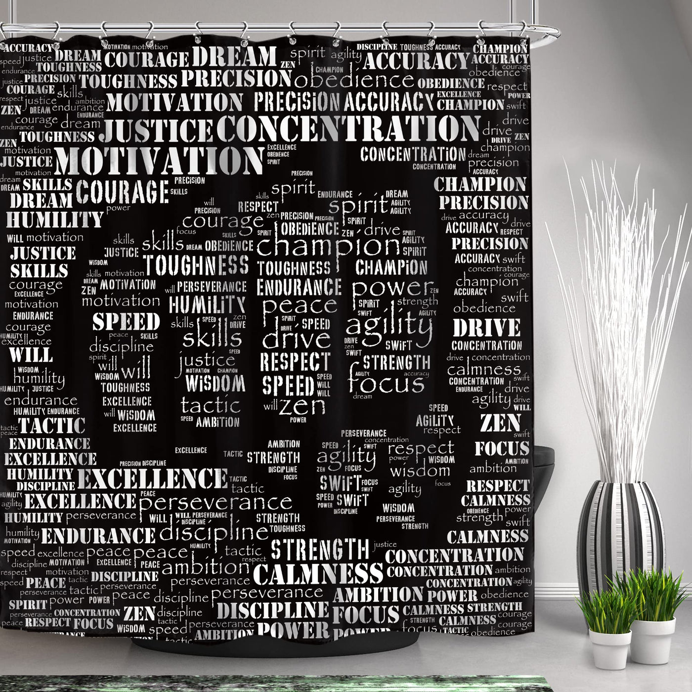 Svbright Mens Motivational Quotes Shower Curtain For Man Black White Inspirational Words Kickboxing 60Wx72L Inch Essence Of Figh