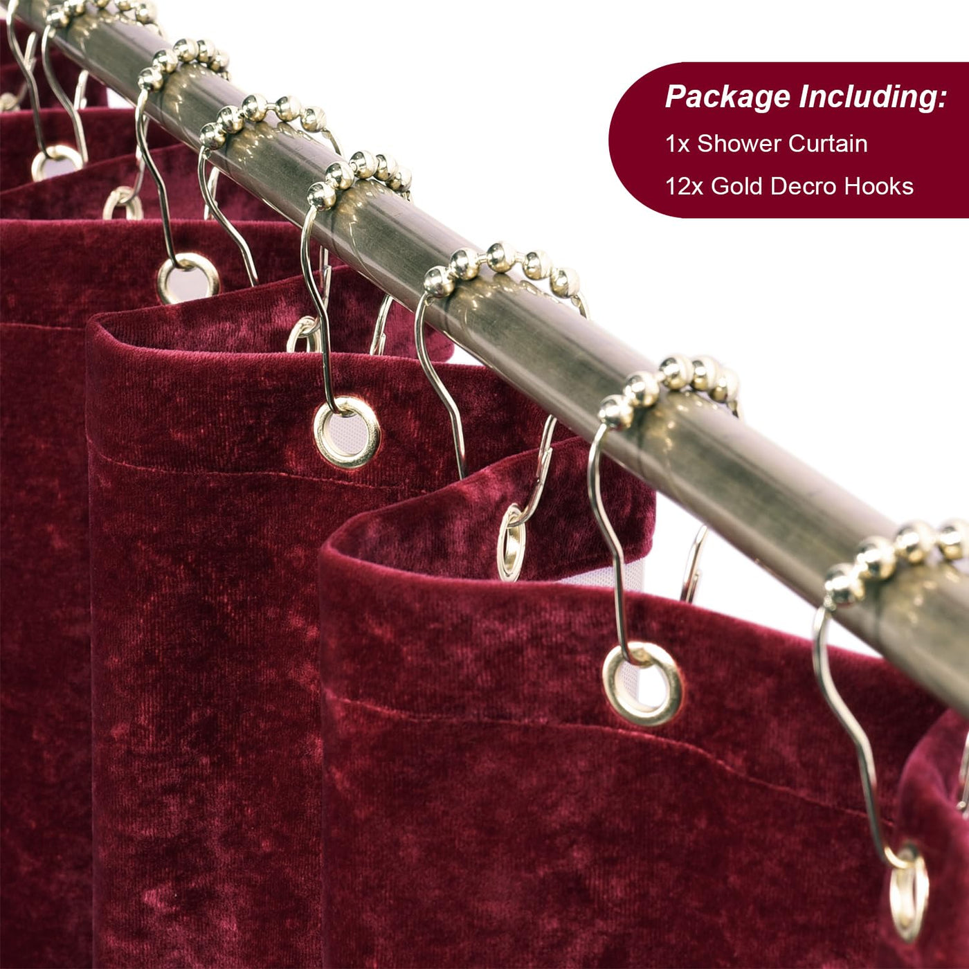Tamgho Red Shower Curtain For Bathroom, Luxury Crushed Velvet Shower Curtain Red, Dark Shower Curtain Set With Gold Decro Metal