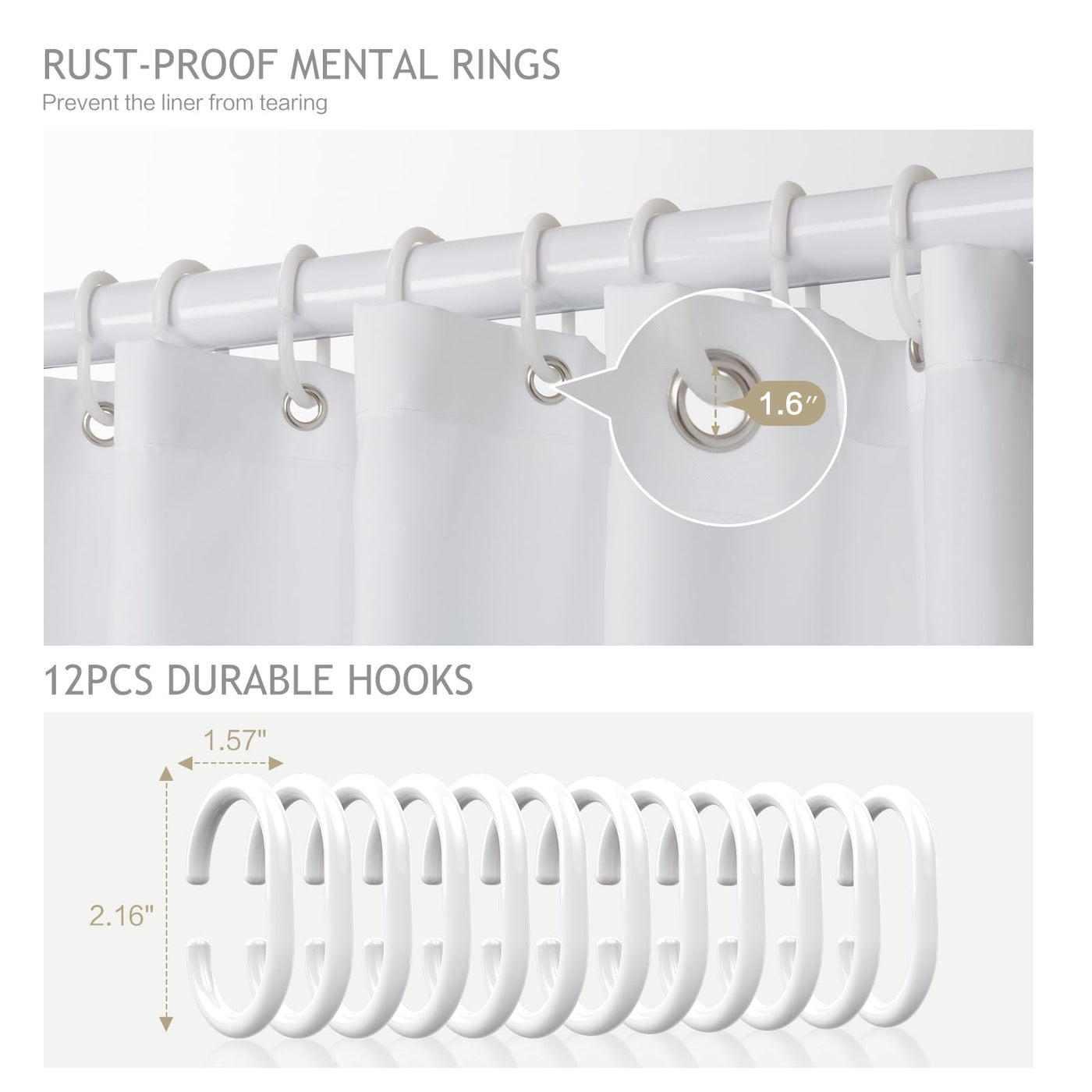 - Q: What are the dimensions of the hooks and metal rings included? A: The hooks measure approximately 1.57 inches by 2.16 inches, while the rust-proof metal rings have a diameter of 1.6 inches.