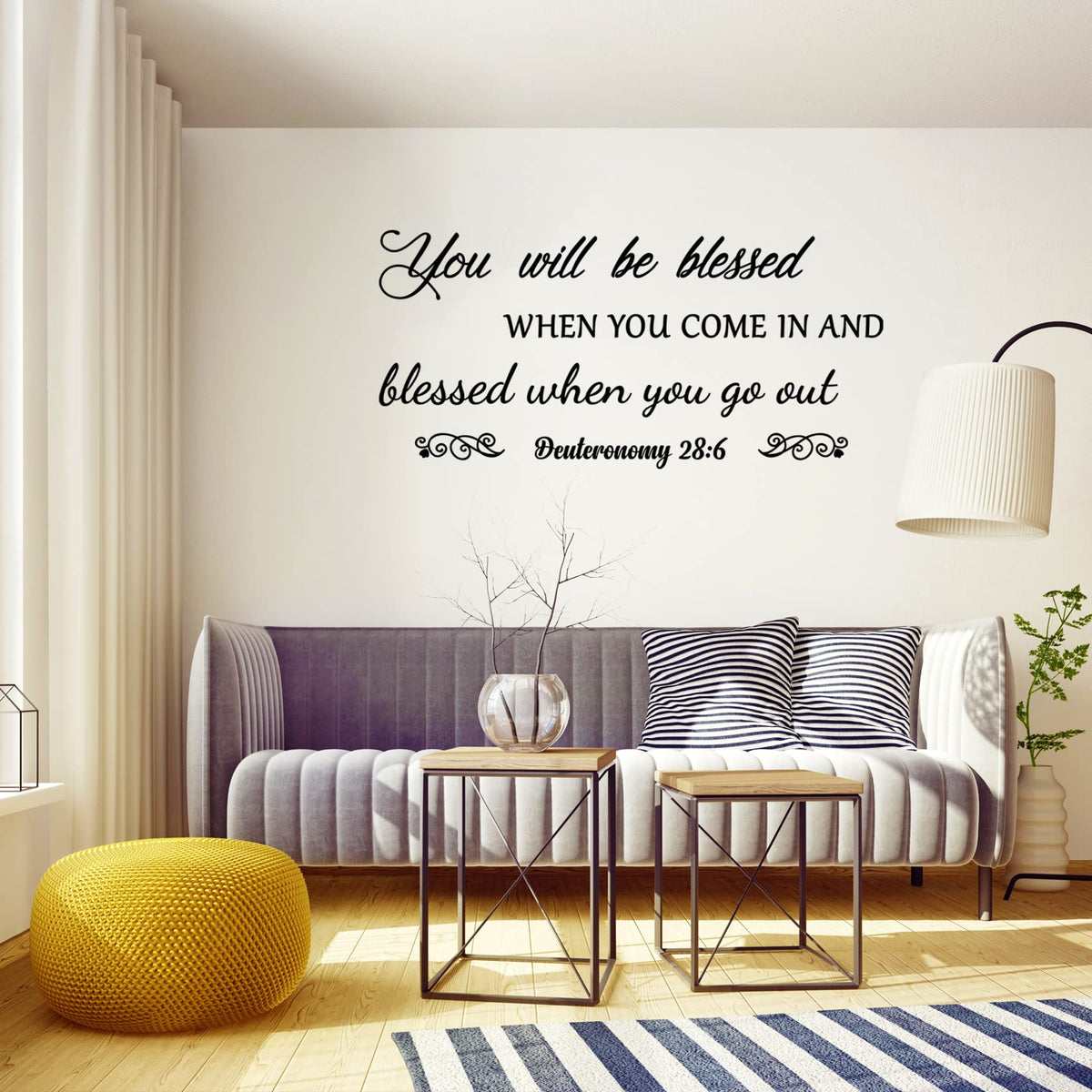 You Will Be Blessed When You Come In And Blessed When You Go Out - Deuteronomy 28:6 Quote Wall Decal, Living Room Prayer Sticker