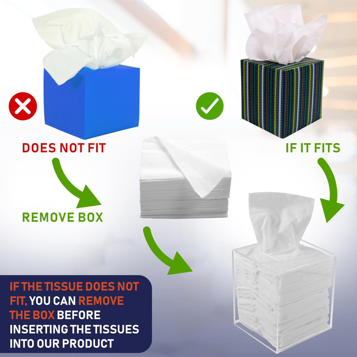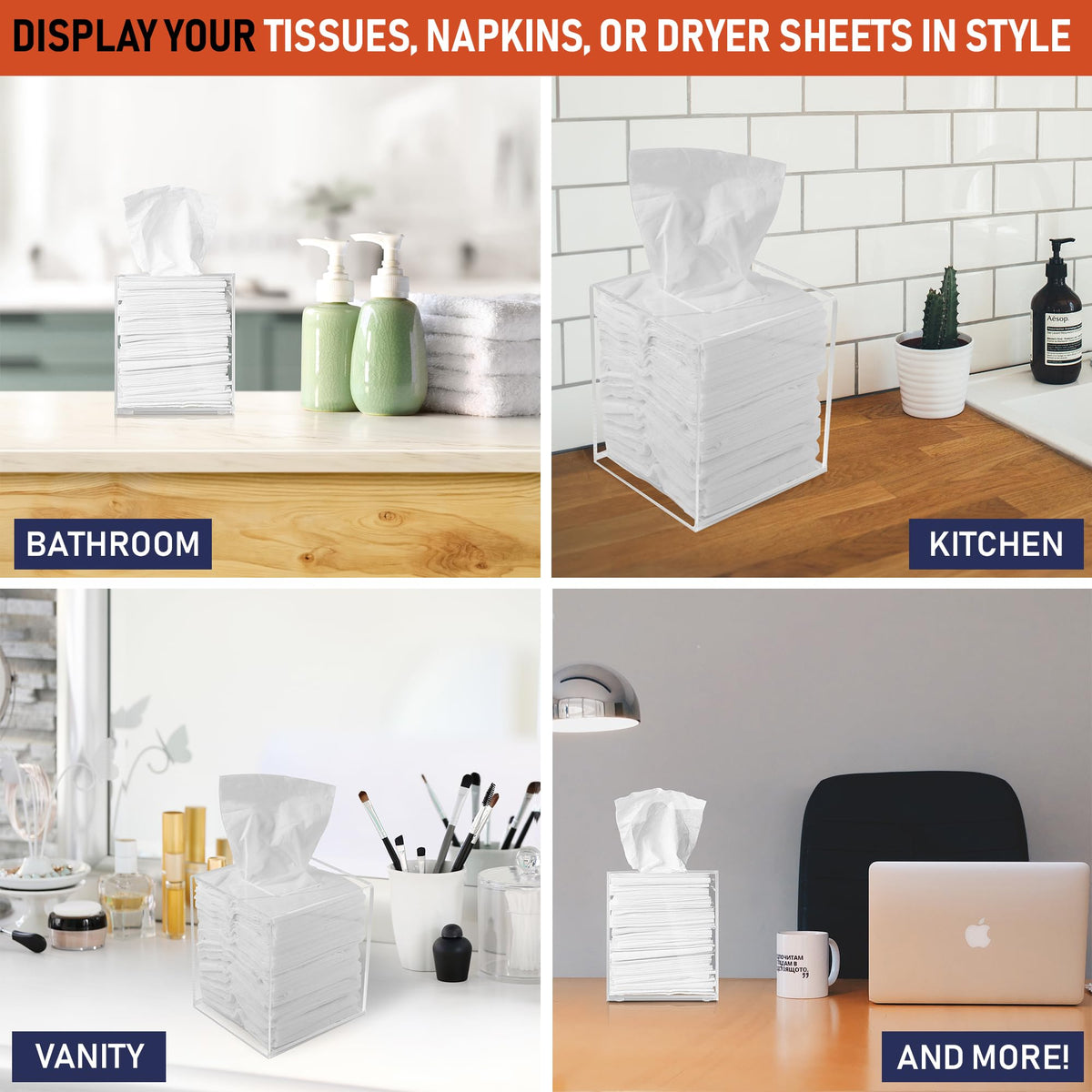 Acrylic Tissue Box Holder, Square Clear Tissue Box Dispenser For Facial Tissue, Napkins, Dryer Sheets. Perfect For Bathroom, Des