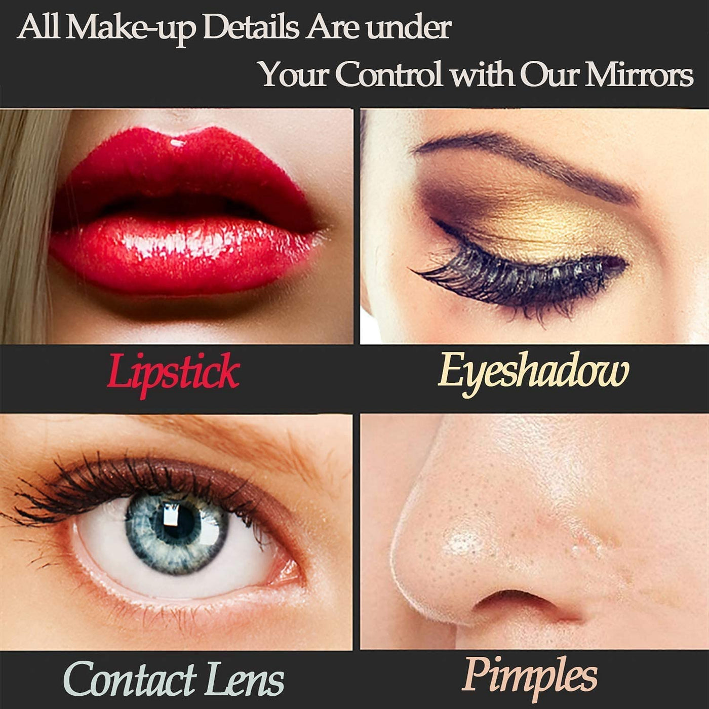 ?Ajustable Brightness & 3 colors Lights?: BENDIC Hollywood lighted vanity mirror surrounded by 15pc LED bulbs,with warm liht/day light /cold light three-tone settings,Ajustable brightnees is meet to your personal makeup requriement. | ?Large Size & USB outlet?: BENDIC large hollywood makeup mirror has a perfect large size(22.8x 18.1),Its large enough to show your makeup, suitable for dresser and bedroom.USB charge port(12V,1A) on the side allows to charge your smart phone or other USB devices. | ?Touch Screen Memory Function & 10X Magnification Modes?: BENDIC vanity mirror with smart design.The left M button is used to change the mode of the light, the middle button is used to turn on and off, and the right P button is used to adjust the brightness. Memory function can keep your light setting like you last use. Lighted makeup mirror has 10X panels magnifying and wide-angle viewing; see clearly your face and make a flawless makeup, suitable for desk makeup and handheld use. | ?Detachable Mirror Base & Hanging setting?: The Large makeup mirror is versatile since it can be placed on a makeup desk or hung on The Wall.It with detachabled base and two back hole for nail.1.Removing mirror base with a screwdriver.2.Knocking two nails on the wall.3.hanging mirror on the wall. | ?Quality warranty & After-sale service?: We promise you no-reason return for three month & Lifetime after-sales service.Pleas dont hesitate to contact us if there are any questions with your vanity mirror,you will get respond within 24 hours.
