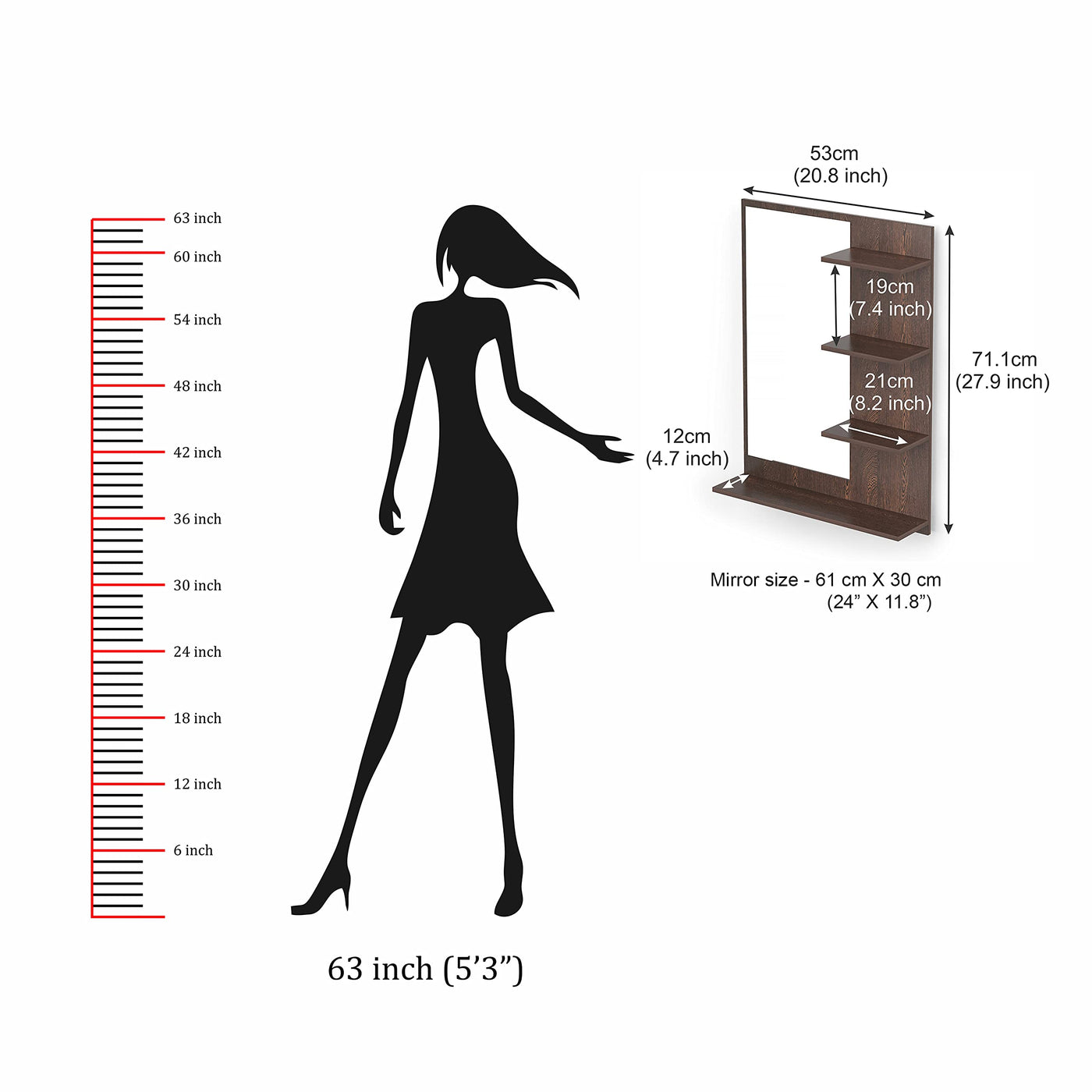 BLUEWUD Rico Mini Engineered Wood Wall Mount Dressing Table Organizer Makeup Vanity with Mirror Storage Shelves for Bedroom Home