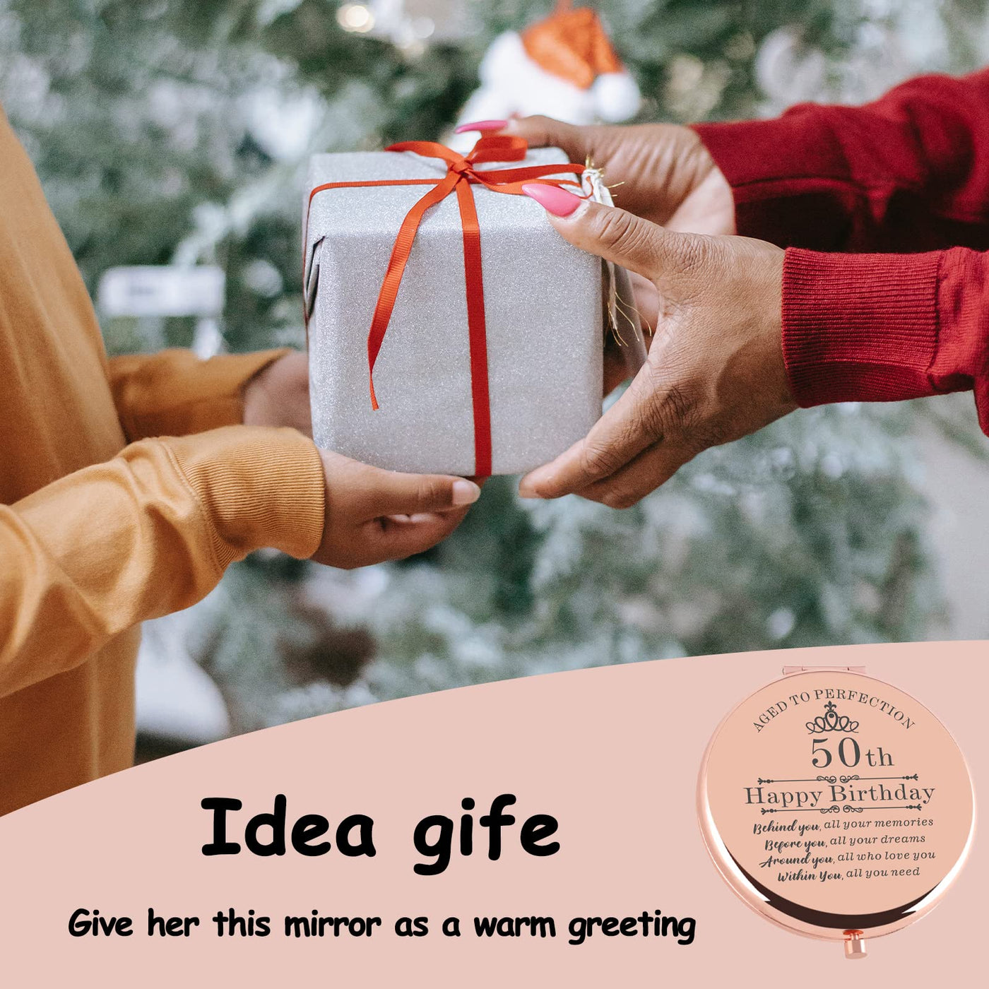 Cawnefil 50th Birthday Gifts for Women Rose Gold 2.6 L x 2.6 W Compact Makeup Mirror, 50th Birthday Gift for Women, Double-Sided