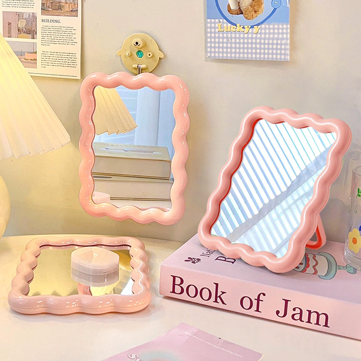Ccredone Wave Shaped Table Desk Vanity Makeup Mirror Portable Folding Cute Travel Make Up Mirror For Standing Hanging 6.7X5.3 In