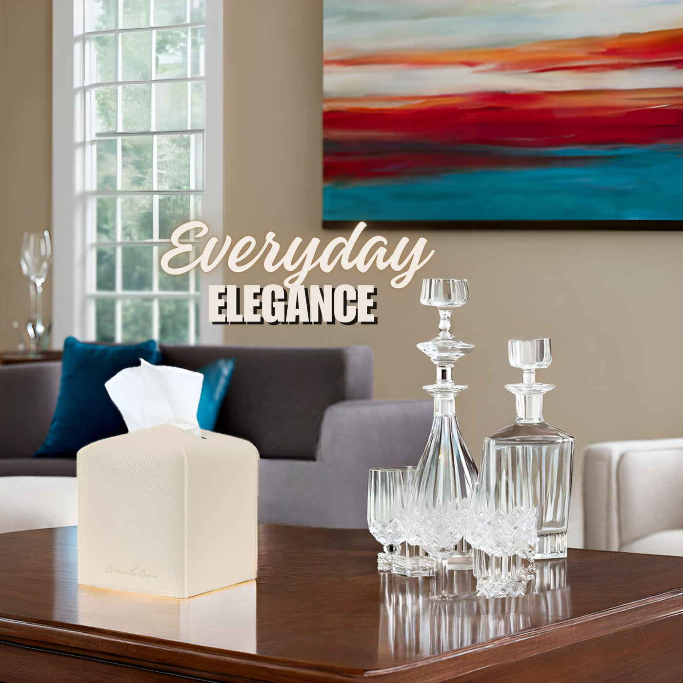 Connsole Casa Premium Pu Leather Tissue Box Holder - Elegant Hotel-Style Beige Tissue Box Cover For Enhanced D Cor Of Home, Off