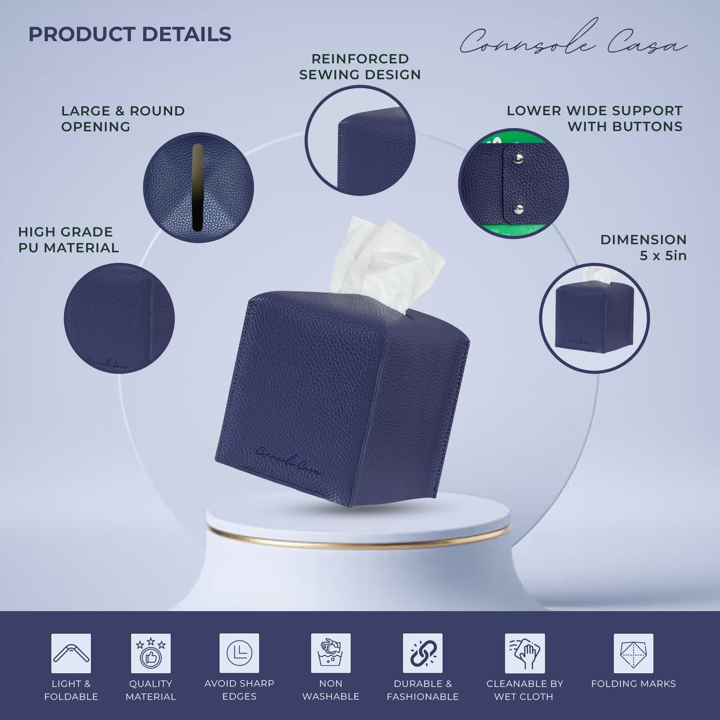 Connsole Casa Premium Pu Leather Tissue Box Holder - Elegant Hotel-Style Blue Tissue Box Cover For Enhanced D Cor Of Home, Offi