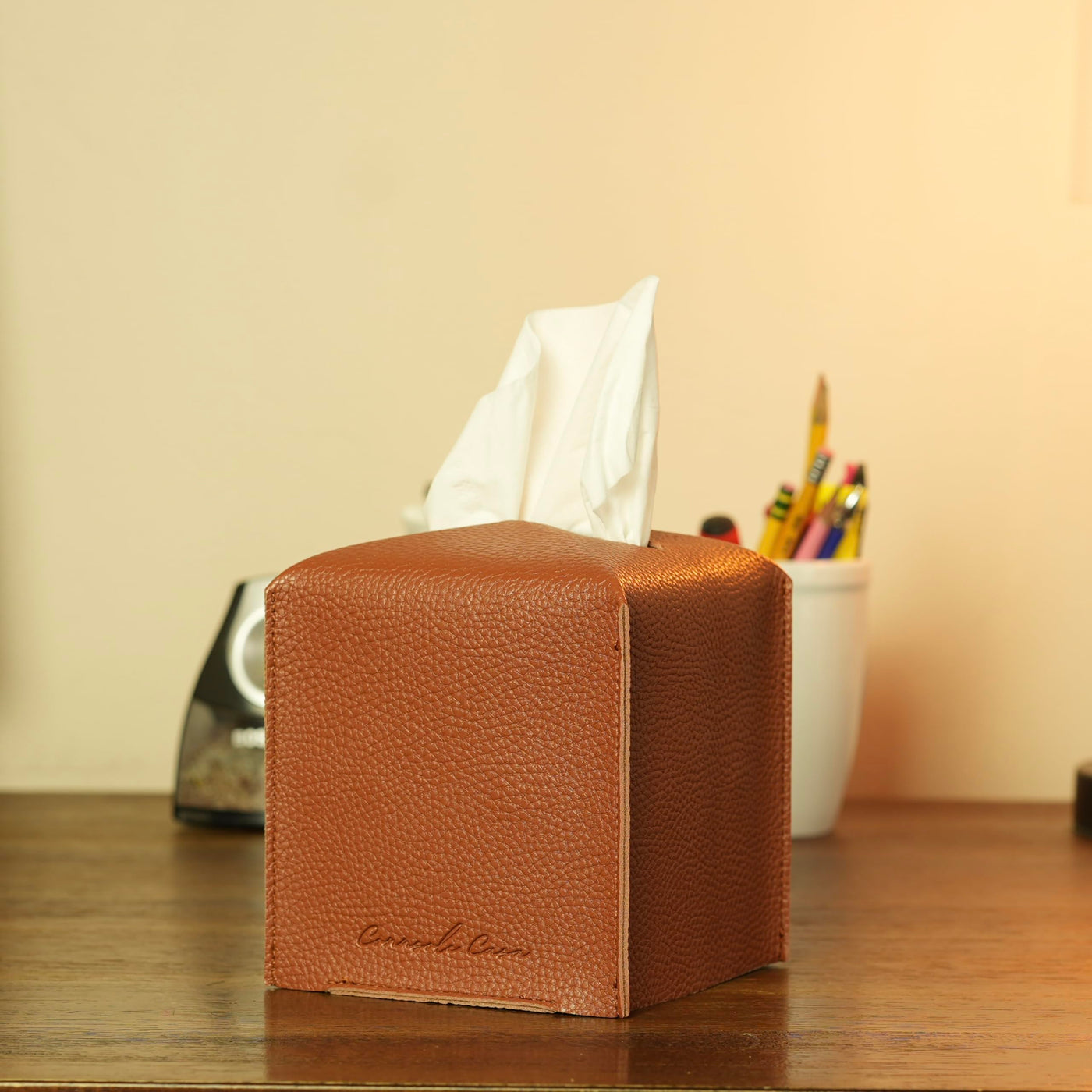 Connsole Casa Premium Pu Leather Tissue Box Holder - Elegant Hotel-Style Camel Tissue Box Cover For Enhanced D Cor Of Home, Off