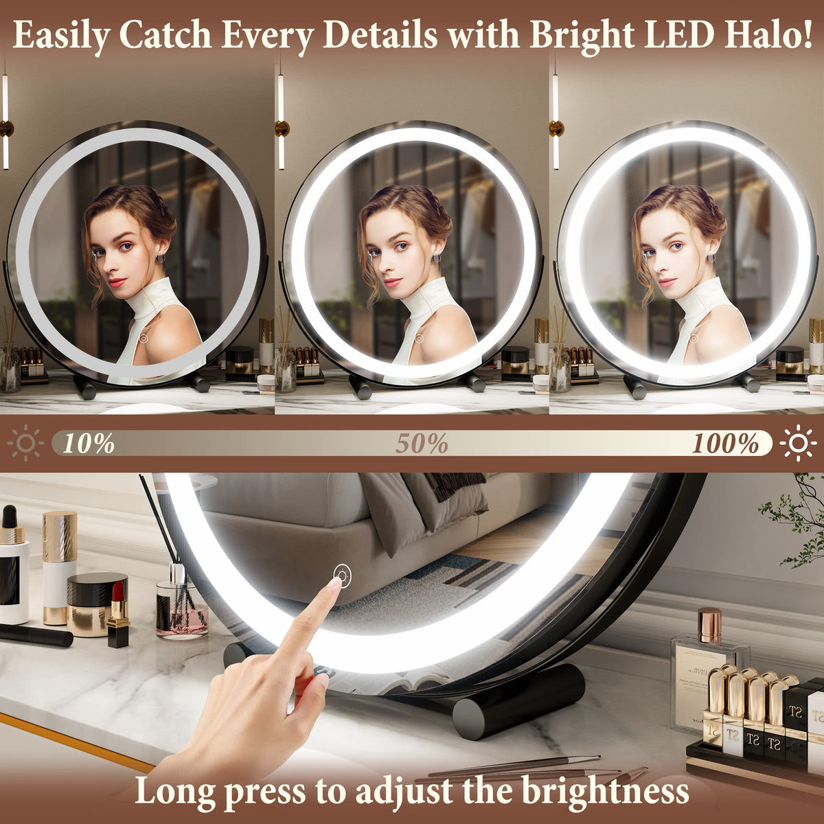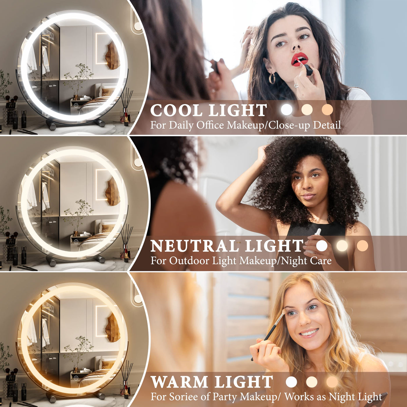 FENNIO 18 inch Large Vanity Mirror with Lights, Round LED Lighted Up Makeup Mirror, Large Makeup Mirror with Lights, Touch Scree