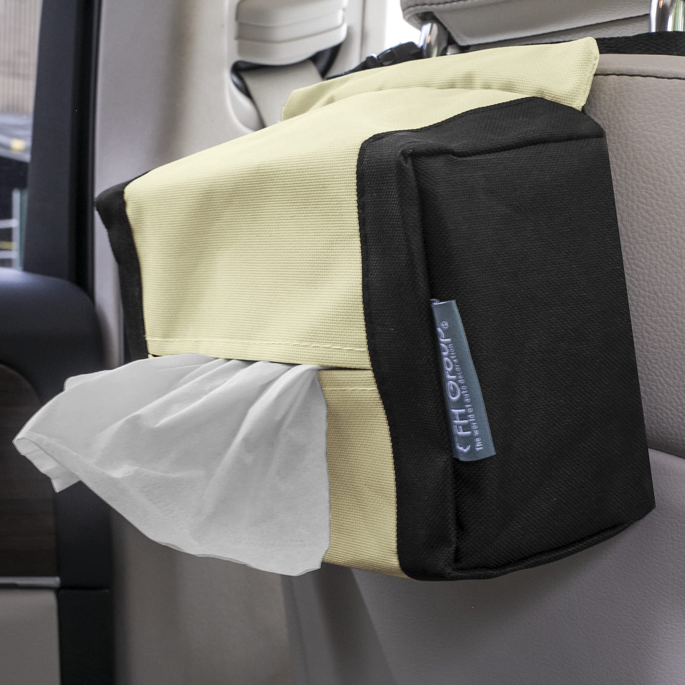 • Q: What is the FH Group E-Z Travel Tissue Dispenser made of? A: The FH Group E-Z Travel Tissue Dispenser is made of woven Oxford fabric, which is durable and easy to clean.