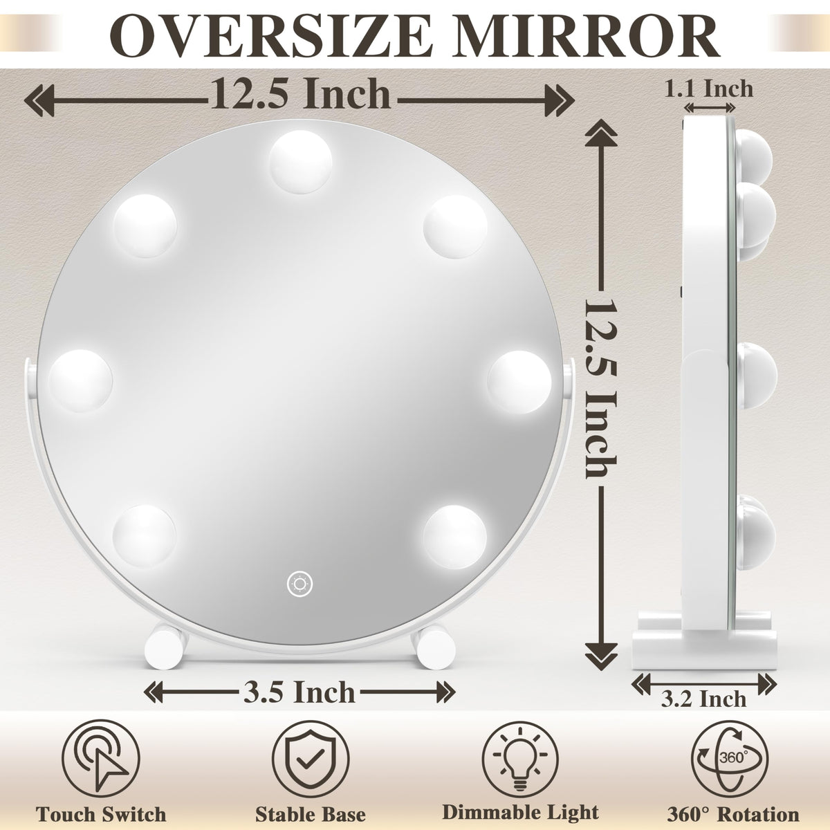 ROLOVE Vanity Mirror with Lights, 12 Inch Hollywood Mirror with Lights for Makeup Desk, LED Makeup Mirror with 7 Dimmable Bulbs