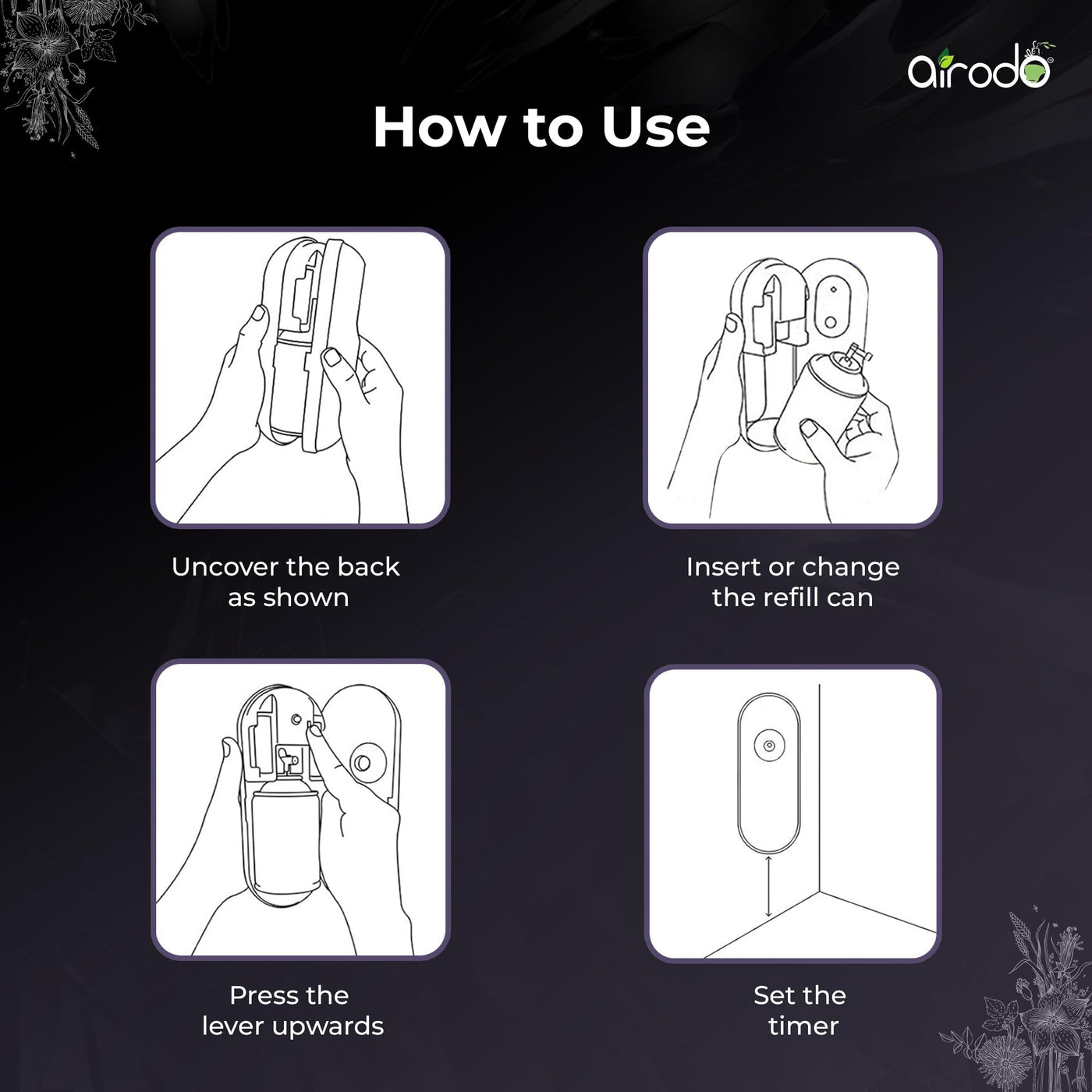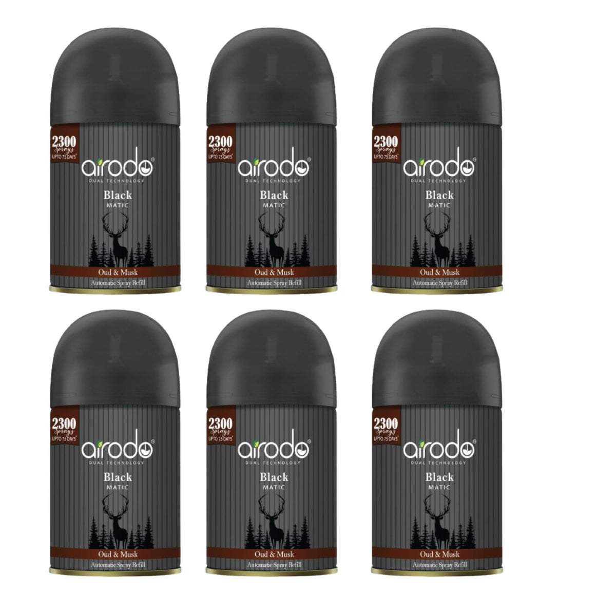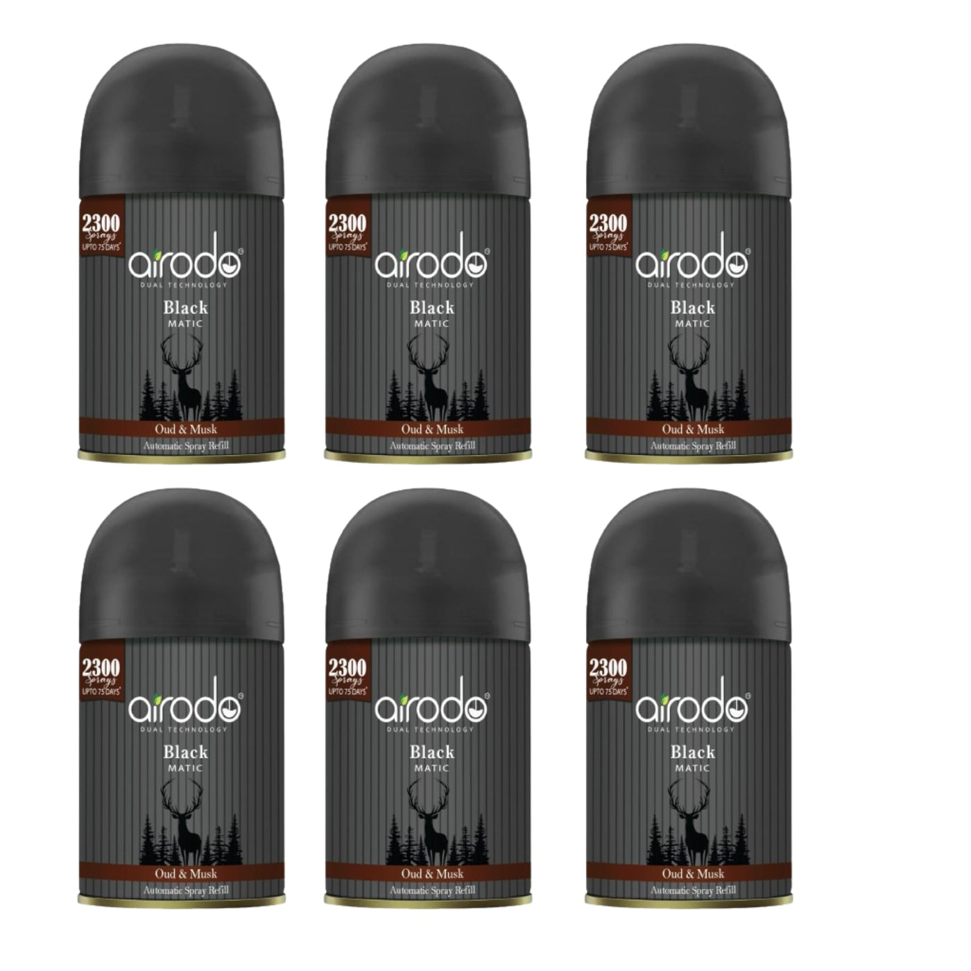 Airodo Black Matic Air Freshner With Dual Technology Oud & Musk With Long Lasting Fragrance 235 Millilitre Booster Upto 75 Days