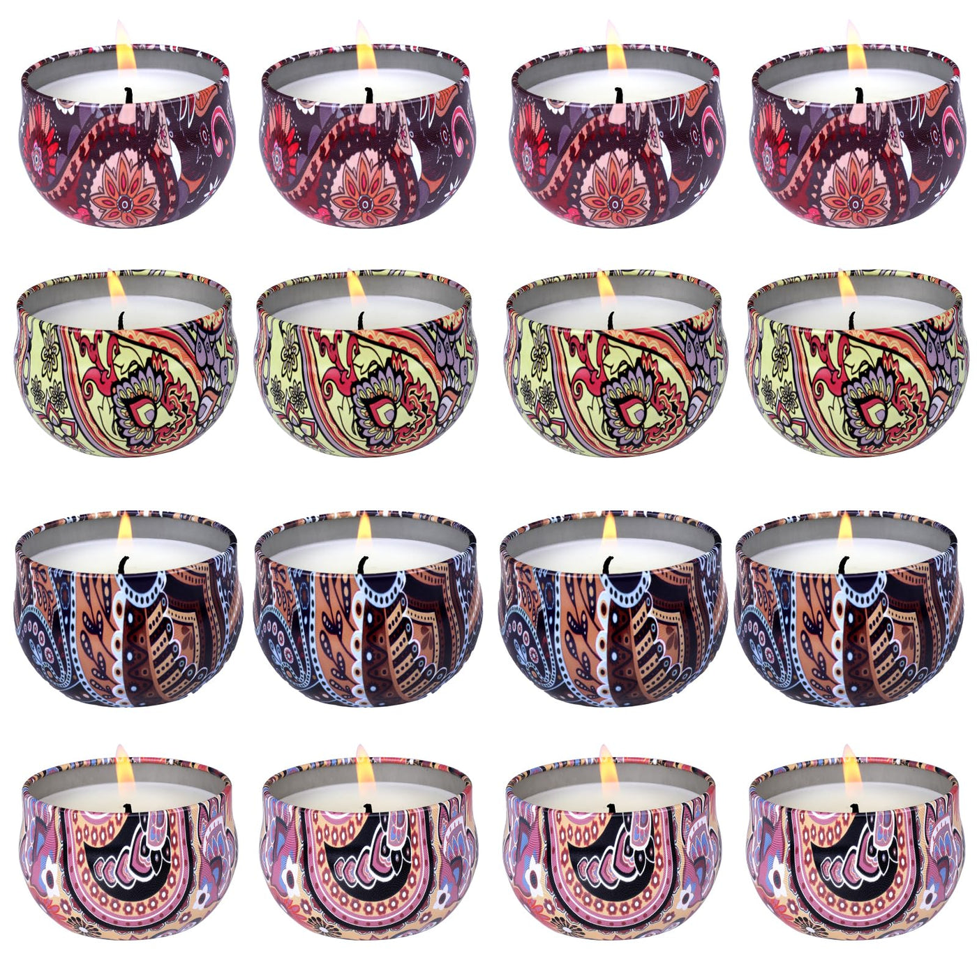 KNOURT 16 Pack Scented Candles Gift Set, Natural Soy Wax Travel Tin Candles for Home Scented, Ideal for Christmas, Birthday, Tha