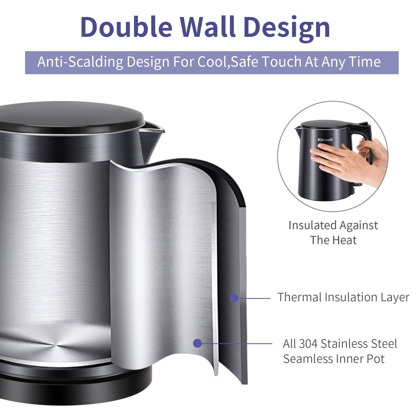 0.8L Small Electric Kettles Stainless Steel, Travel Mini Hot Water Boiler Heater, Double Wall Cool Touch Portable Teapot Heater,