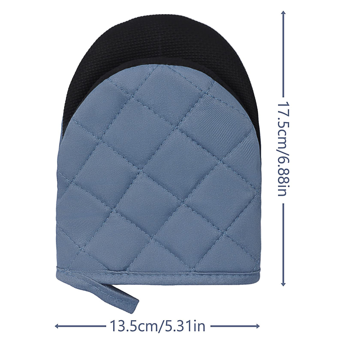 1 Pair Short Oven Mitts, Heat Resistant Silicone Kitchen Mini Oven Mitts For 500 Degrees, Non-Slip Grip Surfaces And Hanging Loo