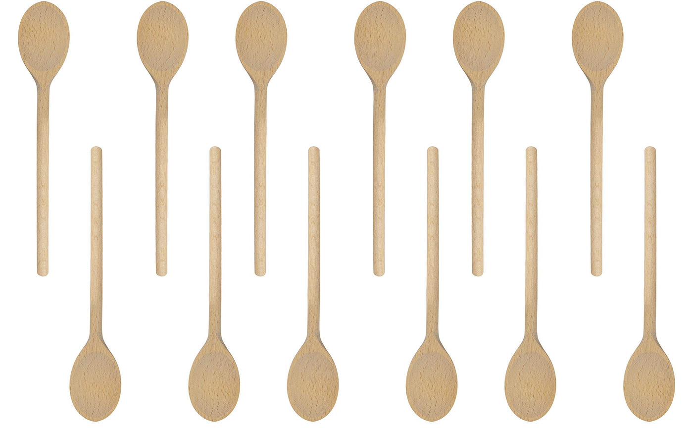 10 Inch Long Wooden Spoon Set By Bicb | Natural Beechwood Mixing Spoons For Baking, Cooking & Stirring | Set Of 12 Long Wooden S