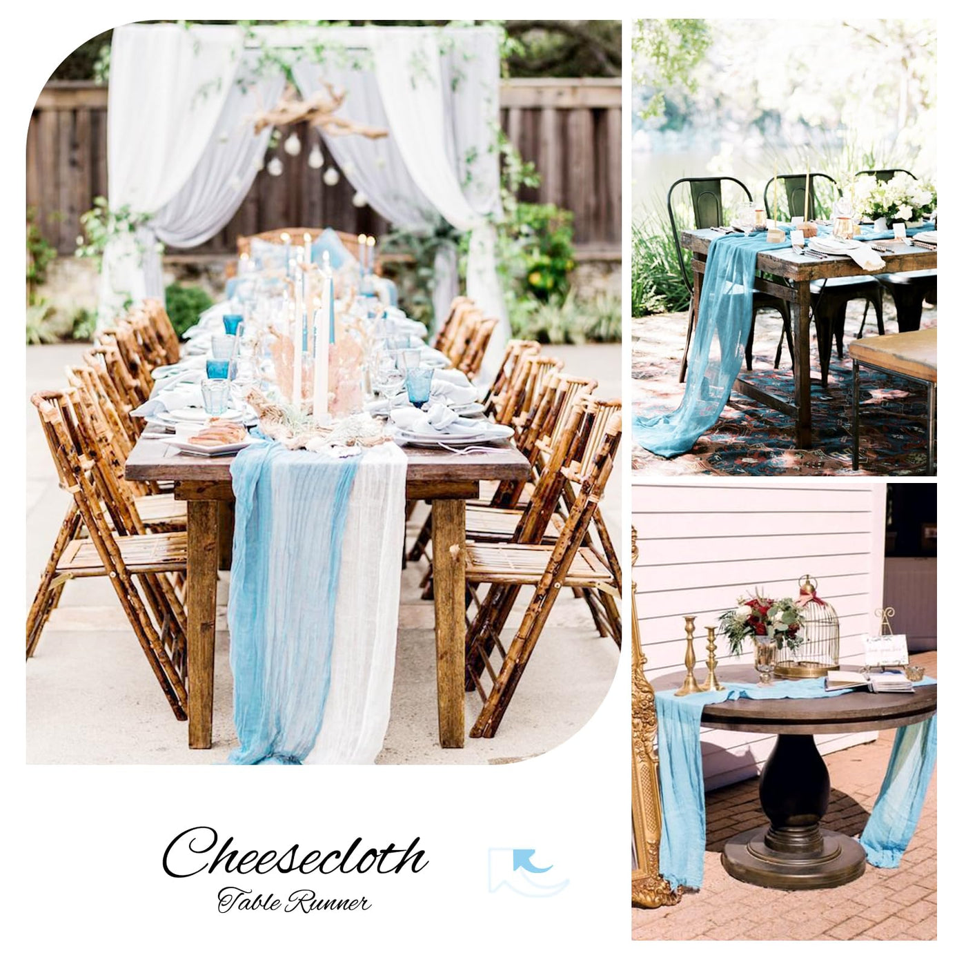 • Q: Are the table runners easy to set up and use? A: Yes, the cheesecloth gauze table runners are easy to set up and can be loosely draped for an elegant look.