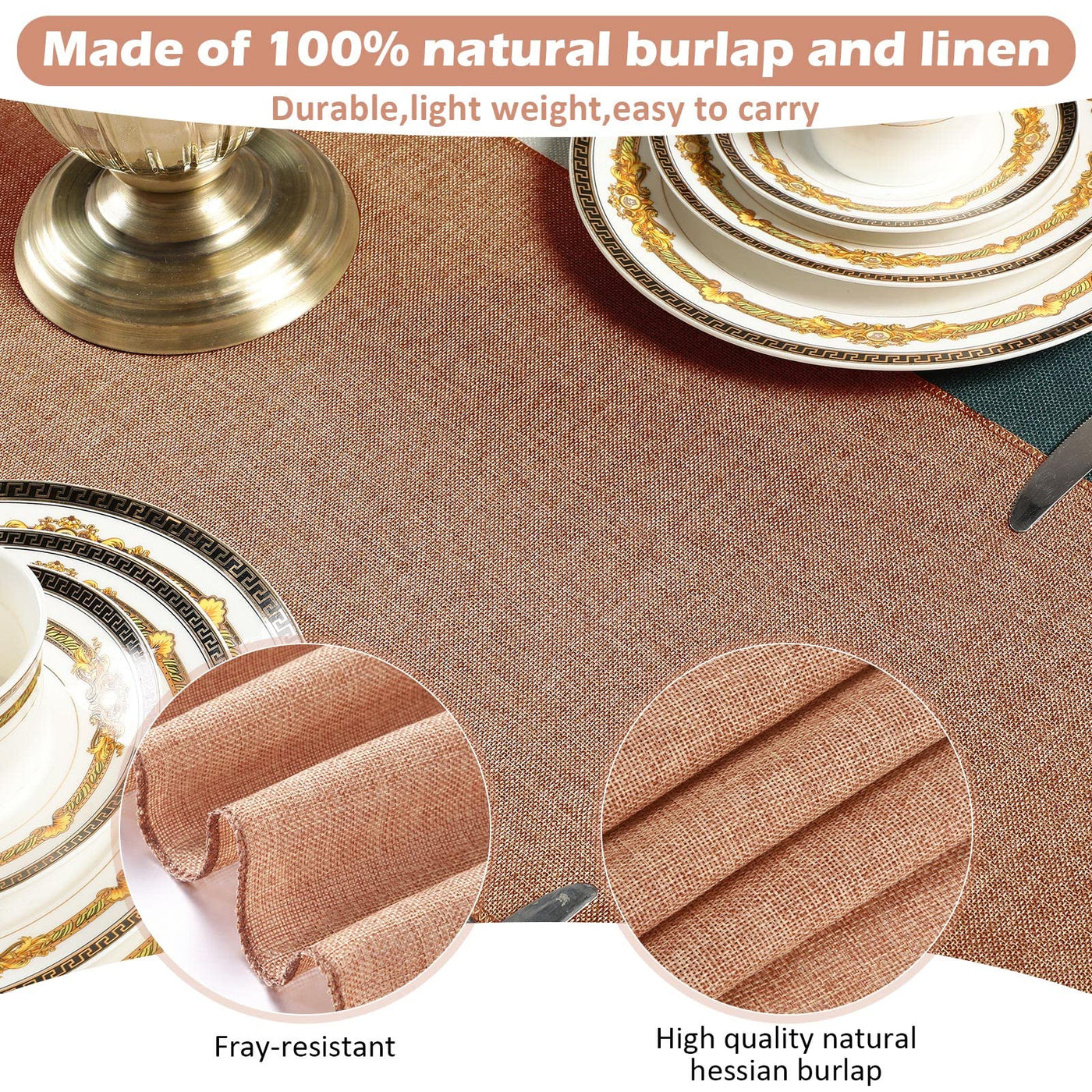 - Q: How should I clean the burlap table runners? A: It is recommended to spot clean the burlap runners with mild soap and water to maintain their appearance.