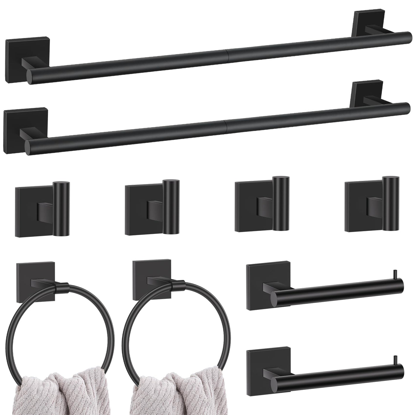 10 Pieces Black Towel Bar Set, 23.6 Inch Bathroom Accessories Set Sus304 Stainless Steel Bathroom Hardware Set Towel Racks For B