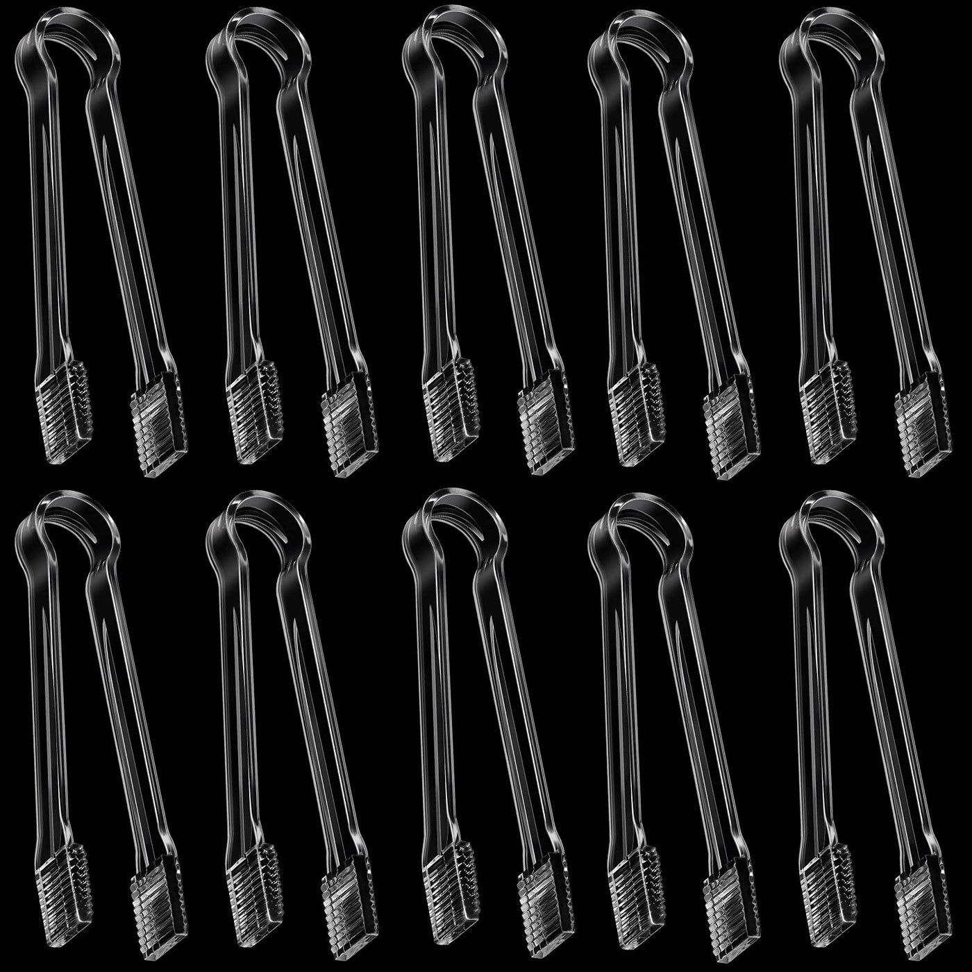10 Pieces Mini Plastic Buffet Serving Tong Small Kitchen Serving Tongs Set Clear Plastic Serving Tongs Sugar Cube Small Ice Tong