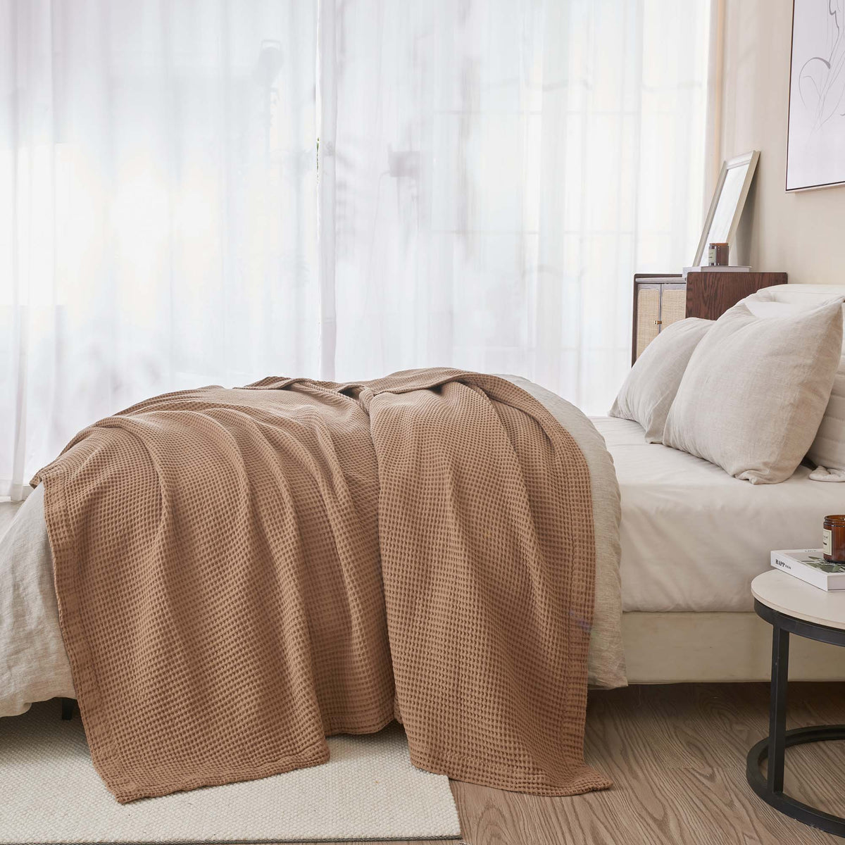 Complete a serene bedding set with our 100% cotton waffle weave blanket. This cotton blanket offers a lightweight warmth that is great as another layer in your bedding or as a lightweight blanket. This blanket offers many uses as a beach blanket or picnic blanket, or add it to any room for an update to your decor. This collection's wide color palette and waffle weave texture give you visual interest that will easily elevate your bedroom decor. This blanket features quality cotton that offers breathability and a lightweight feel that is perfect for summer.