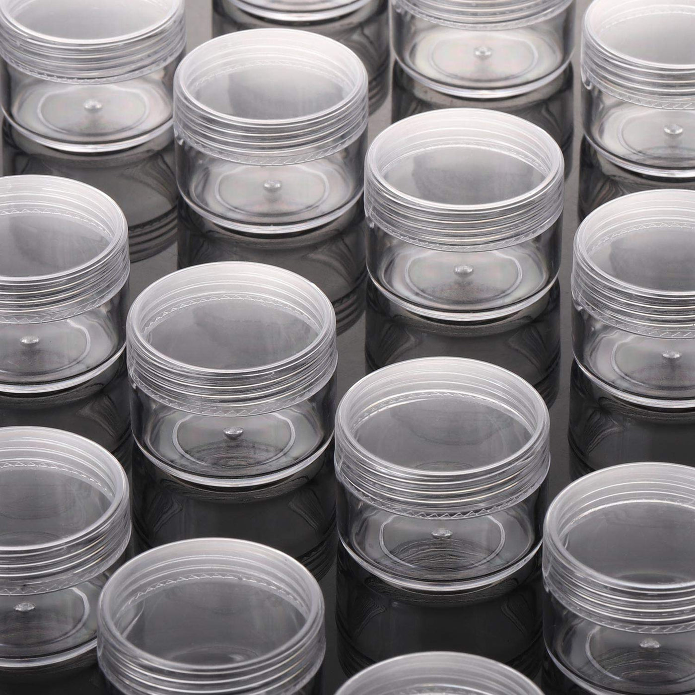 • Q: How many containers are included in this set? A: This set includes 100 pieces of plastic jars with lids.