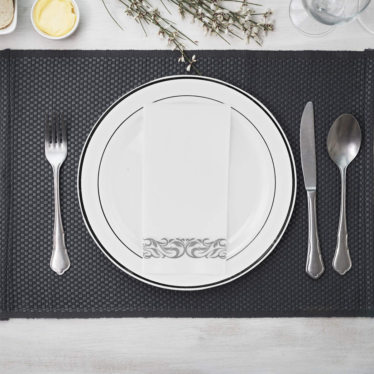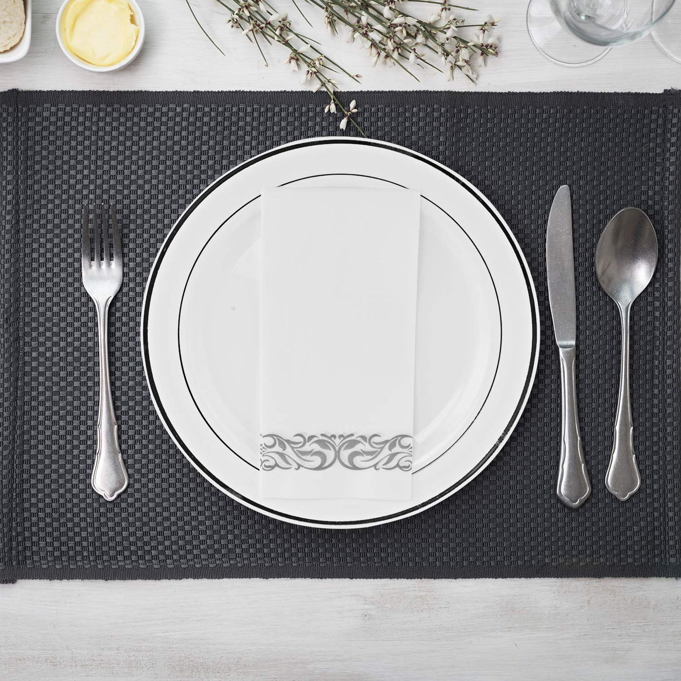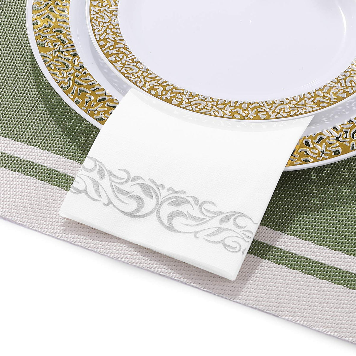 [100 Pack] Disposable Bathroom Napkins Single-Use Guest Towels Soft and Absorbent Linen-Feel Paper Hand Towels for Kitchen Parties Weddings Dinners or Events Silver