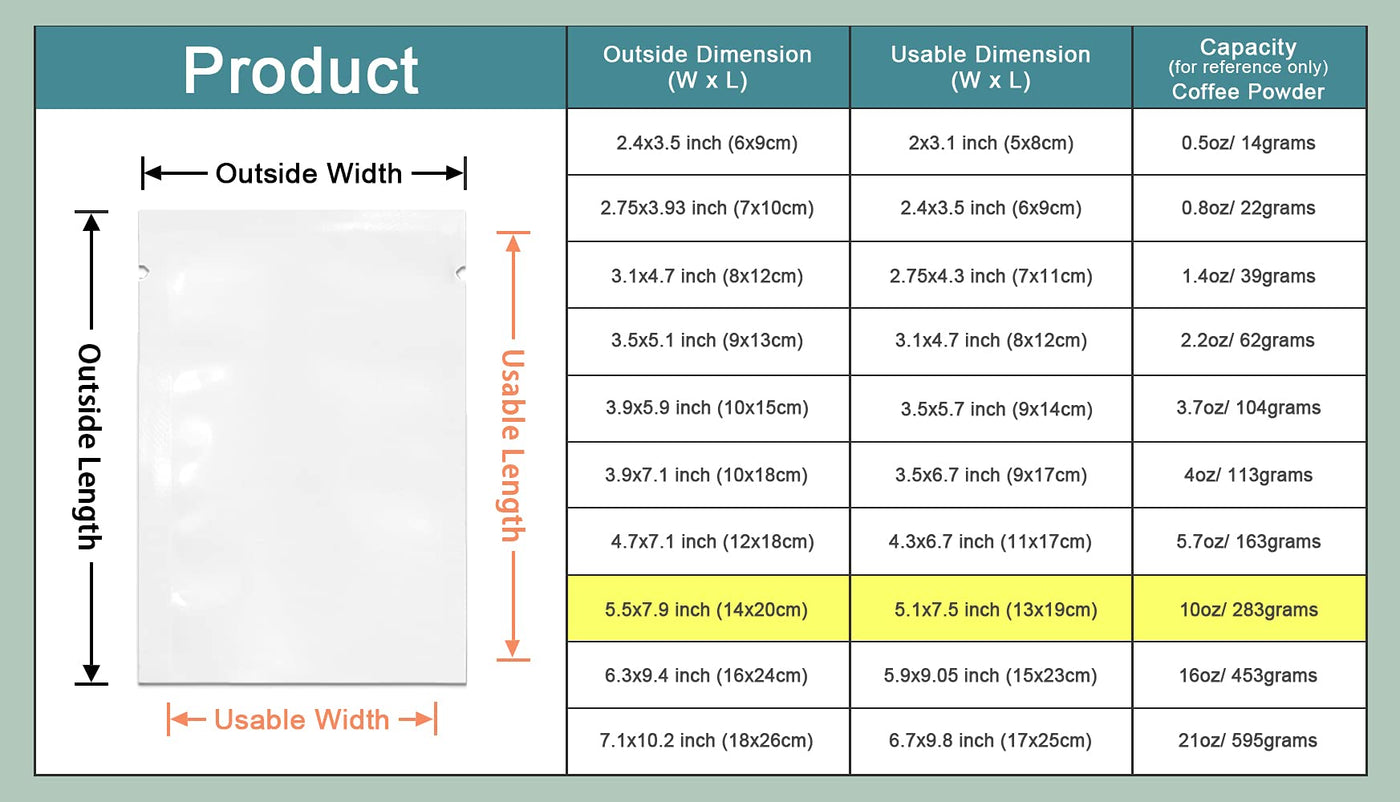 - Q: What are the dimensions of the vacuum pouch? A: The vacuum pouch measures 5.5 inches by 7.9 inches, with a usable size of 5.1 inches by 7.5 inches.