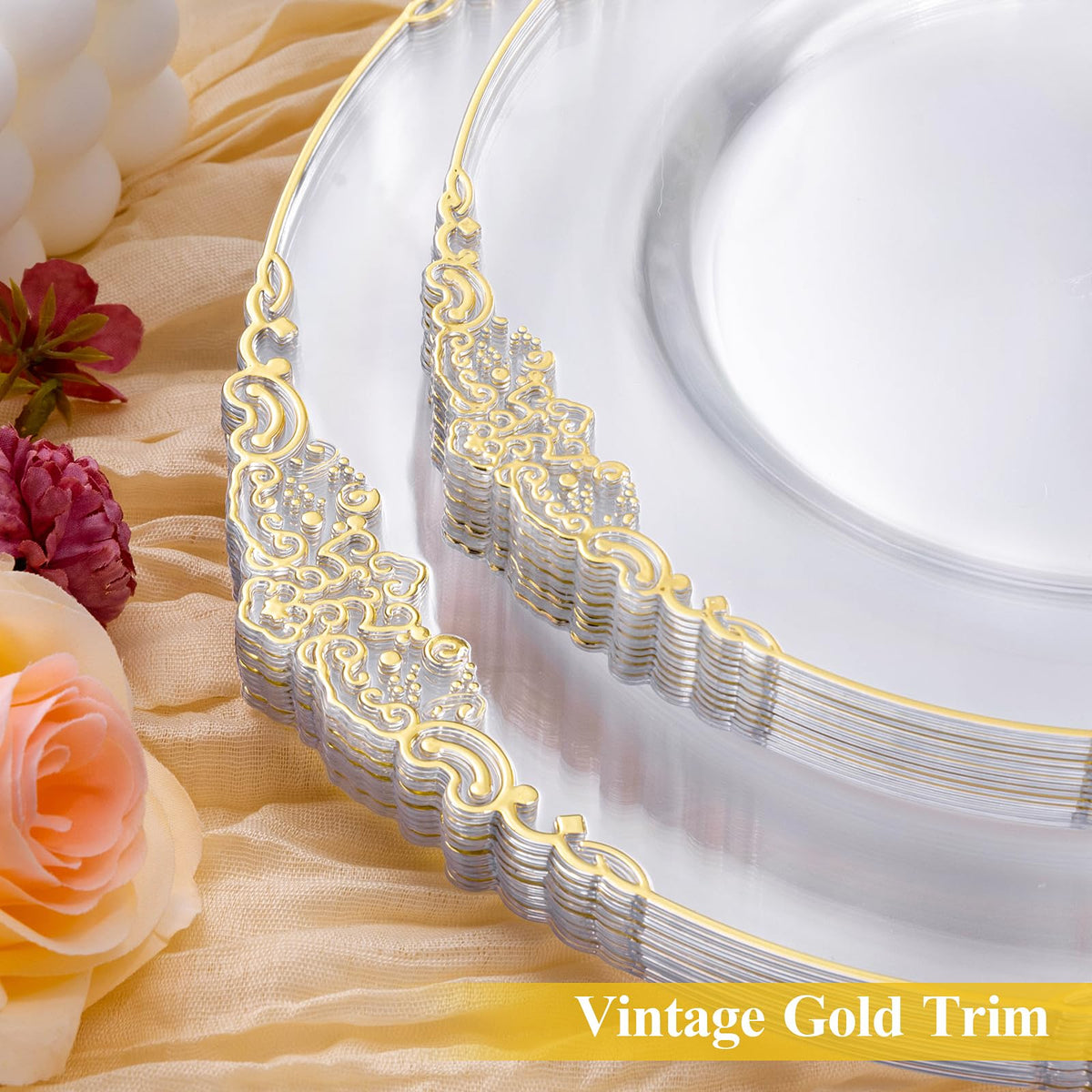 - Q: Do the plates have a design or pattern? A: Yes, the plates feature an elegant design with a vintage gold trim, adding a sophisticated touch to your event.