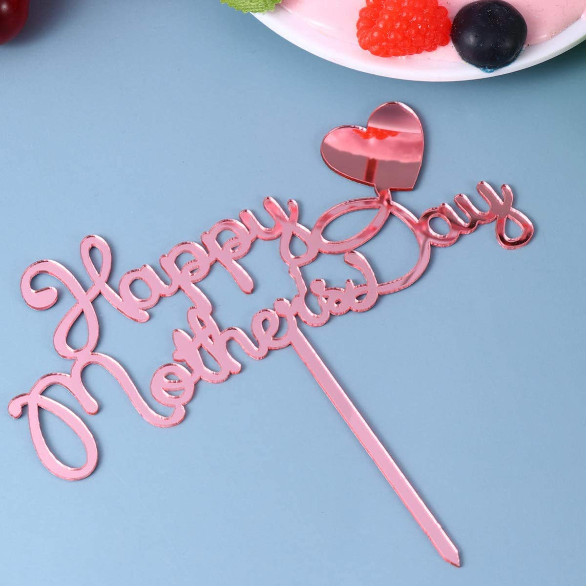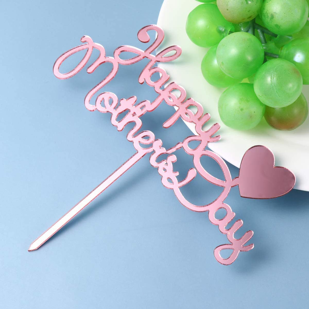 10Pcs Happy Mothers Day Cake Toppers Acrylic Cake Picks For Mothers Day Birthday Cake Decoration - Rose Gold