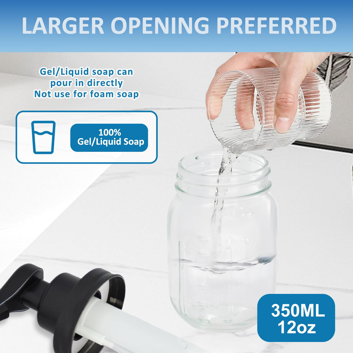 12 Oz Automatic Touchless Glass Soap Dispenser, Rechargeable Hands Free Liquid Mason Jar Soap Dispenser With Electric Sensor Pum