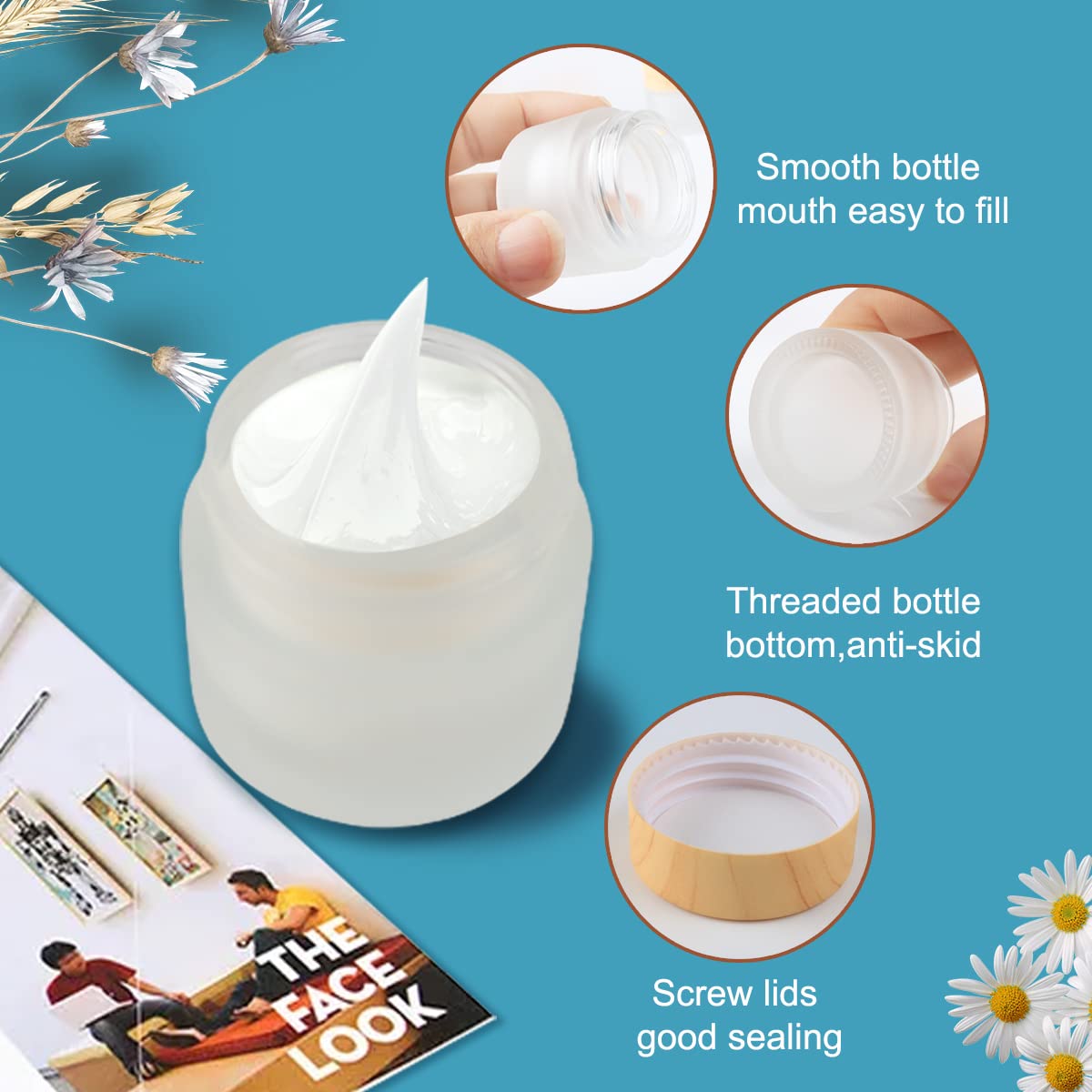 - Q: How many jars are included in the package? A: The package includes 12 pieces of frosted glass jars and 4 spatulas.
