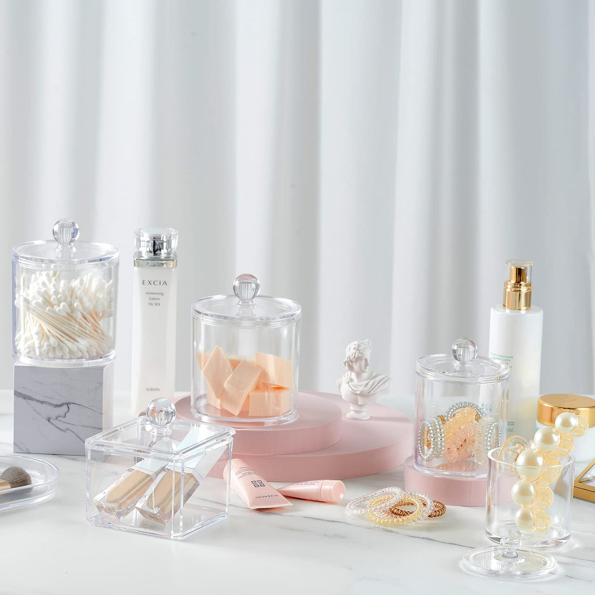 • Q: Can I use these jars for items other than bathroom essentials? A: Absolutely! The jars can also be used for storing items in the kitchen, craft room, or even for pet treats, makeup remover, and other small accessories.