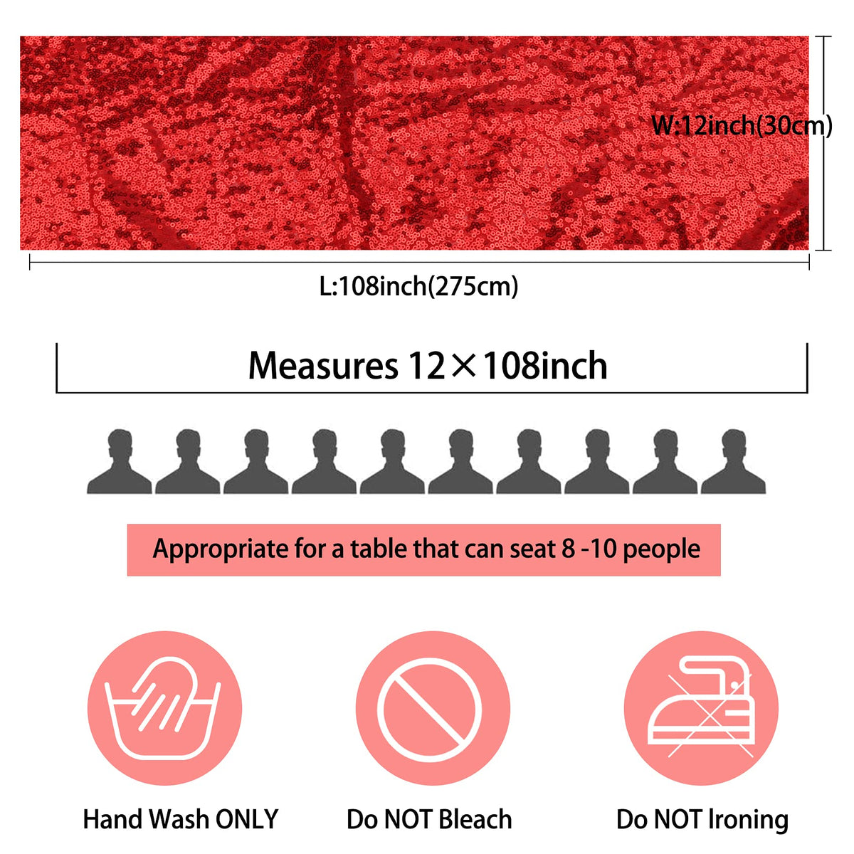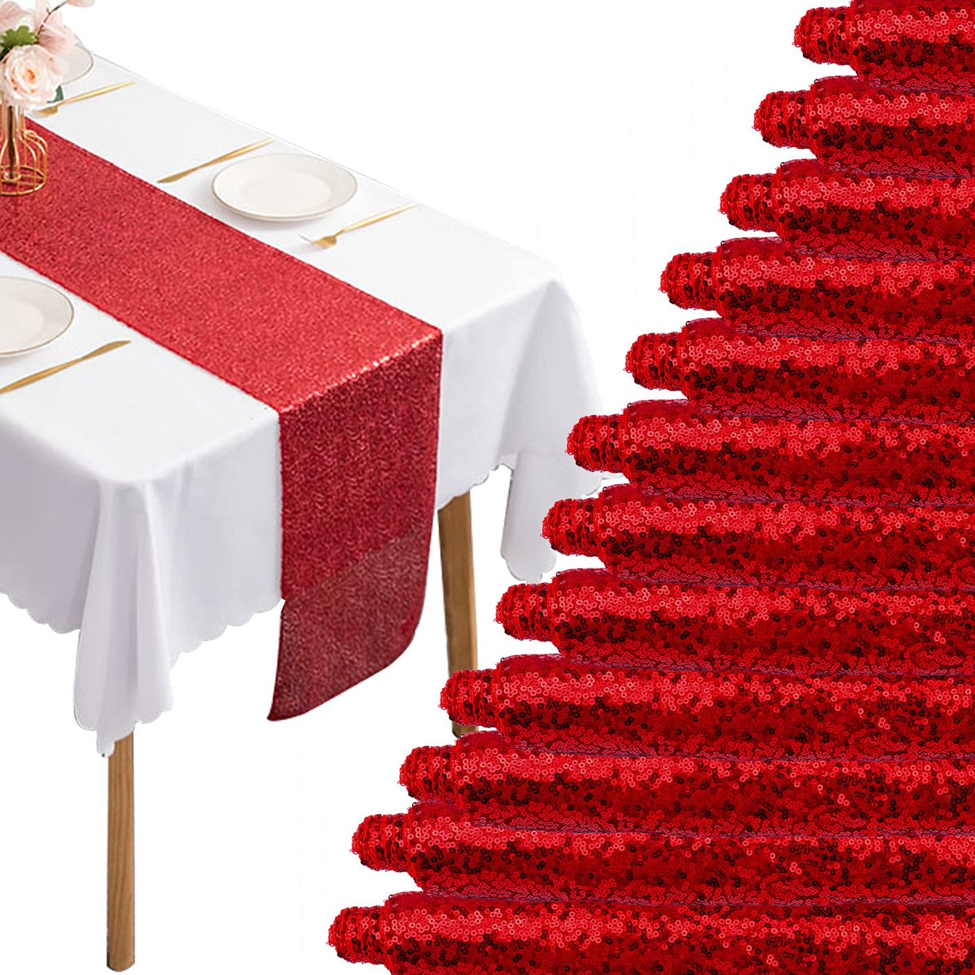12 Packs 12 X 108 Inch Red Sequin Table Runner Glitter Dining Table Runner For Birthday Wedding Engagement Bridal Baby Shower Ba
