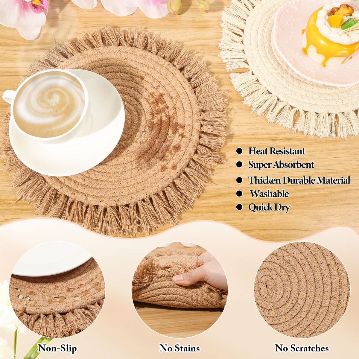 - Q: Do the placemats have any decorative features? A: Yes, the placemats feature tassels that create an elegant and rustic round design.