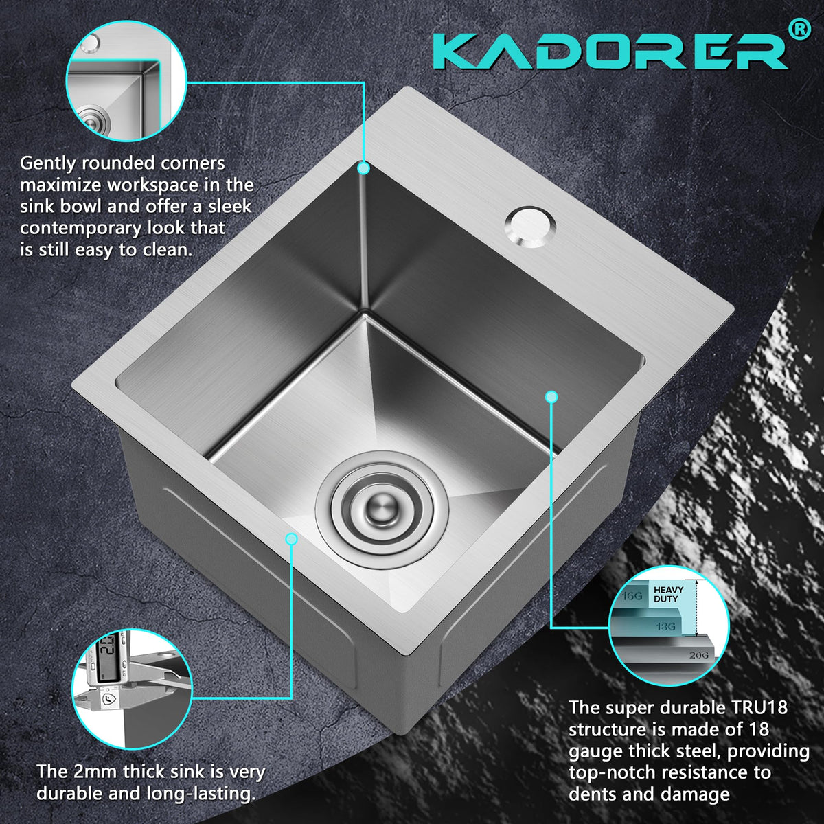 13 X 15 Inch Drop In Bar Sink, Small Kitchen Sink Single Bowl Topmount Bar Prep Sink 18 Gauge Stainless Steel Bar Sink With Bask