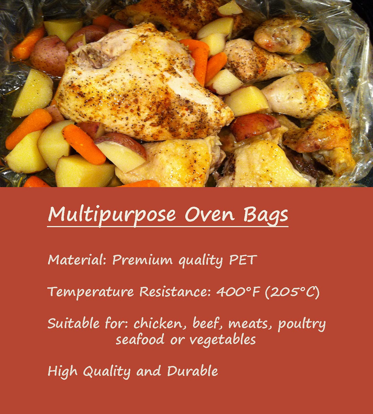- Q: What material are the oven bags made of? A: The oven bags are made from premium quality Polyethylene Terephthalate (PET), ensuring durability and safety during cooking.
