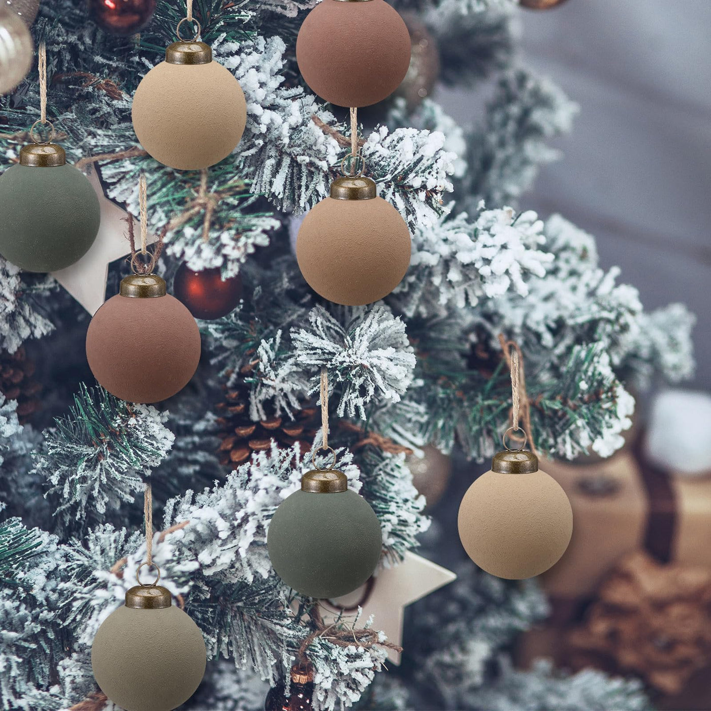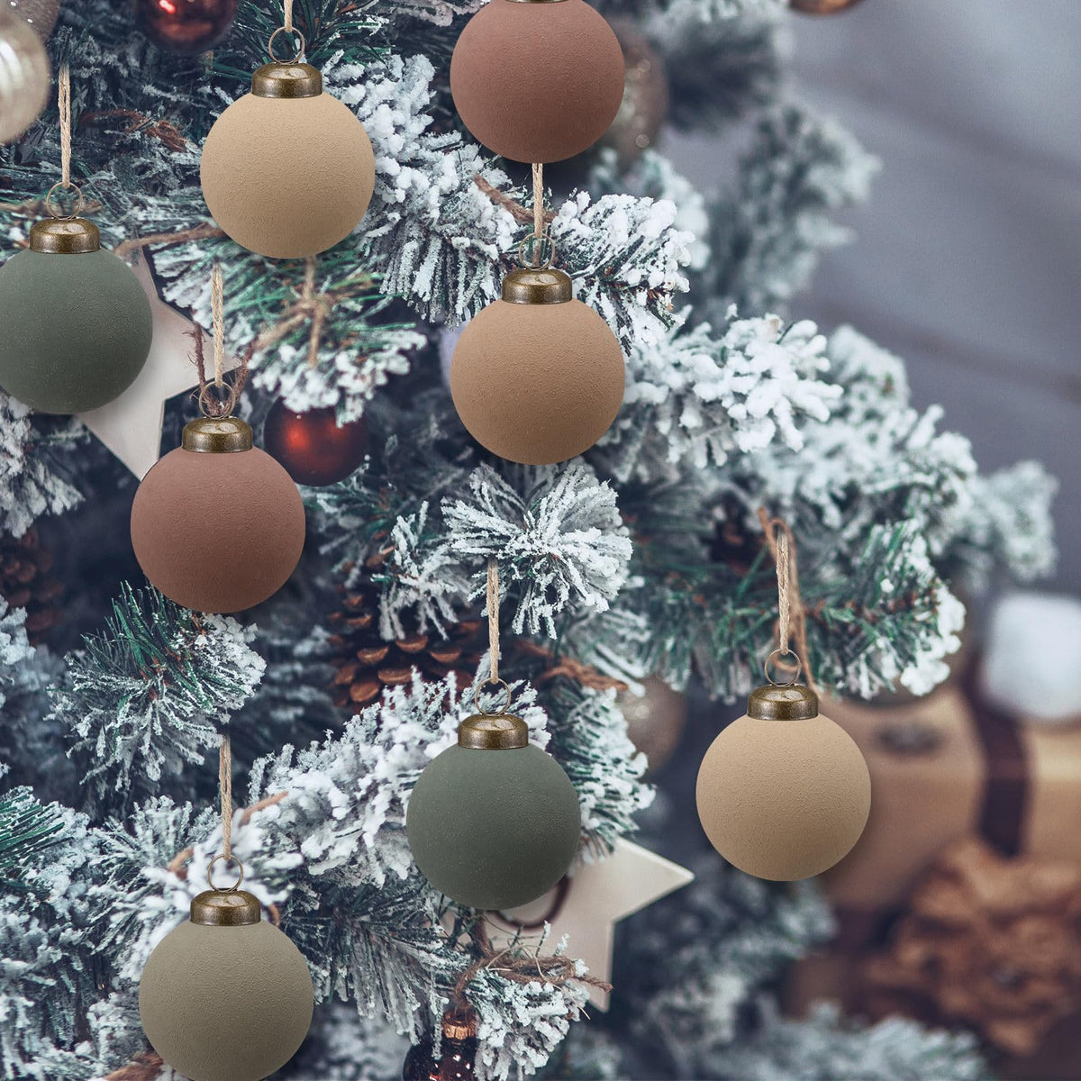 15 Pcs Neutral Matte Christmas Ball Ornaments 2.36'' Textured Rustic Boho Brown Taupe Pine Green Xmas Ball Ornaments Modern Chri