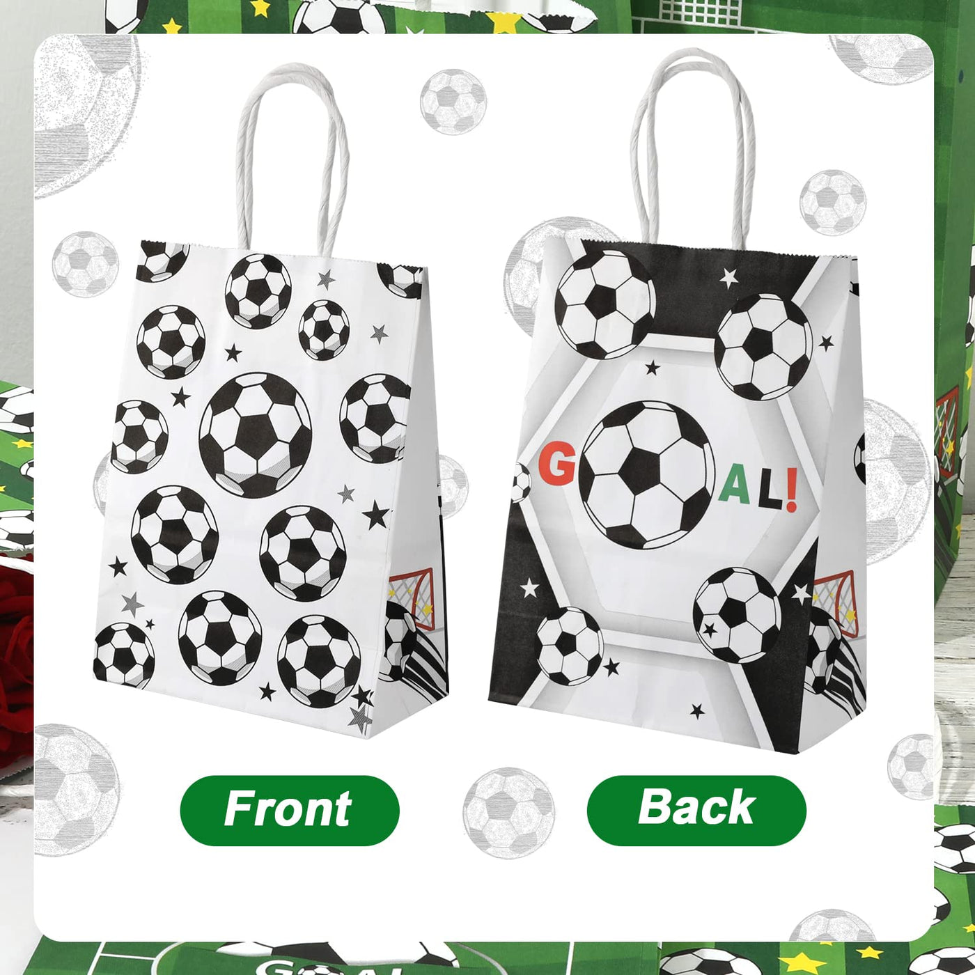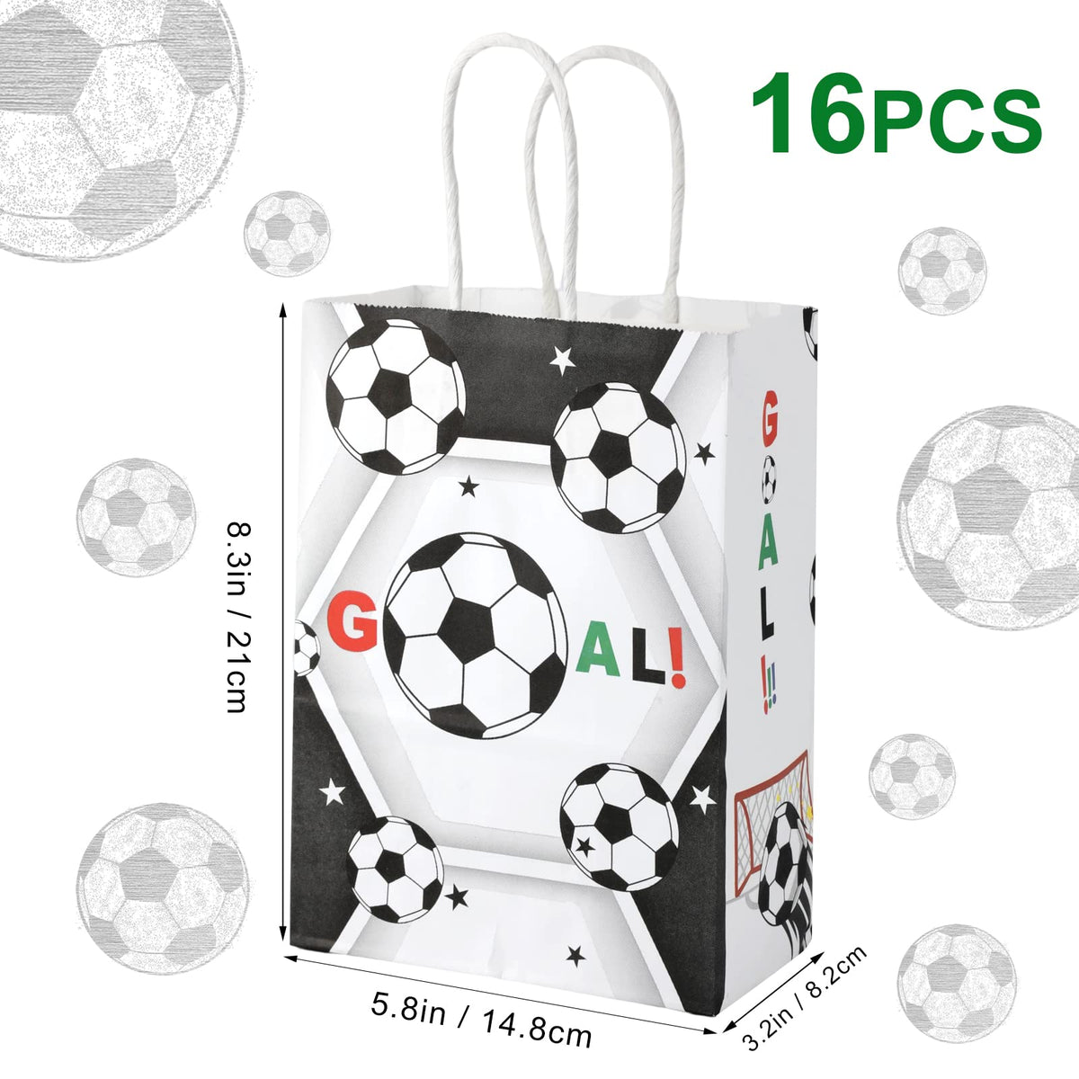 16Pcs Soccer Party Favor Paper Bags, Football Themed Party Bags With Handles Soccer Goodie Bags Treat Candy Bags For Kids Adults