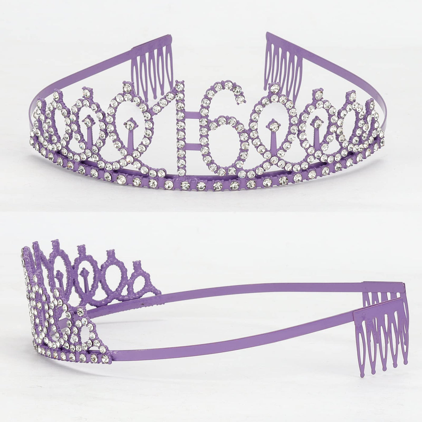 16Th Purple Crown And Sash Kit - Sweet 16 Party Decorations, Gifts, And Supplies For Girls (Purple)