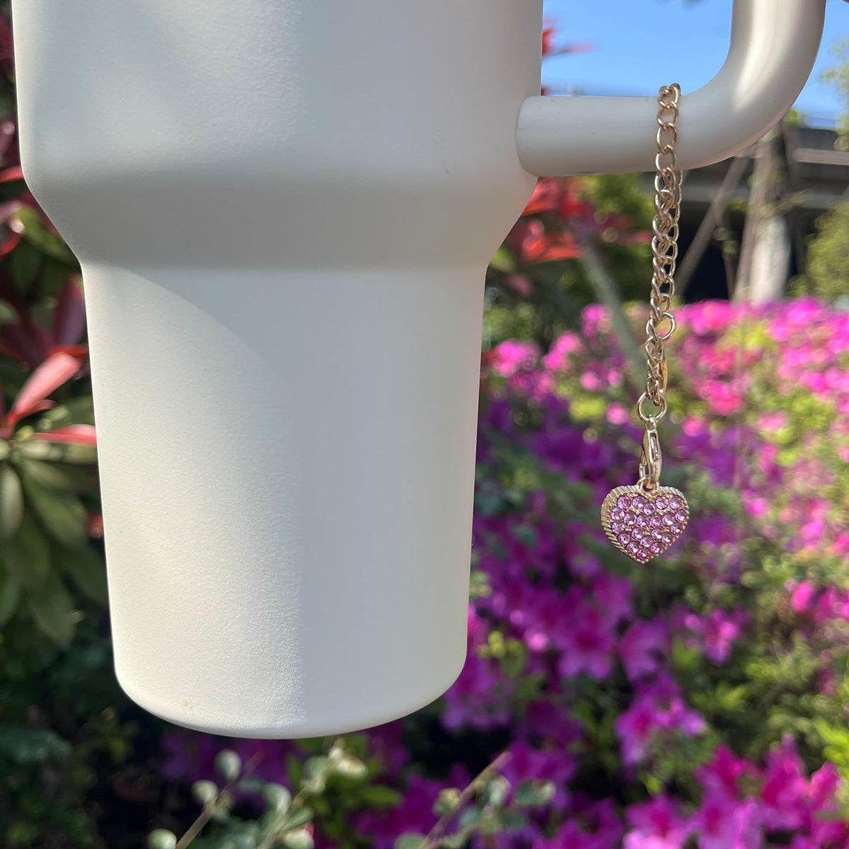 - Q: How do the heart charms attach to the tumbler? A: The heart charms feature an adjustable length of 3.5 to 3.9 inches and can easily be attached to the tumbler handle.